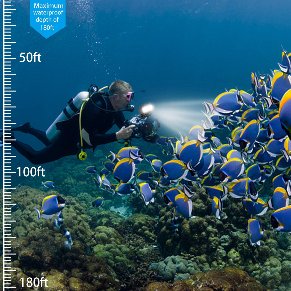 Q: How deep can I use the Suptig dive light underwater?A: The Suptig Waterproof Light is designed to be waterproof up to 180 feet (55 meters), allowing you to capture stunning underwater photos and videos without any issues.
