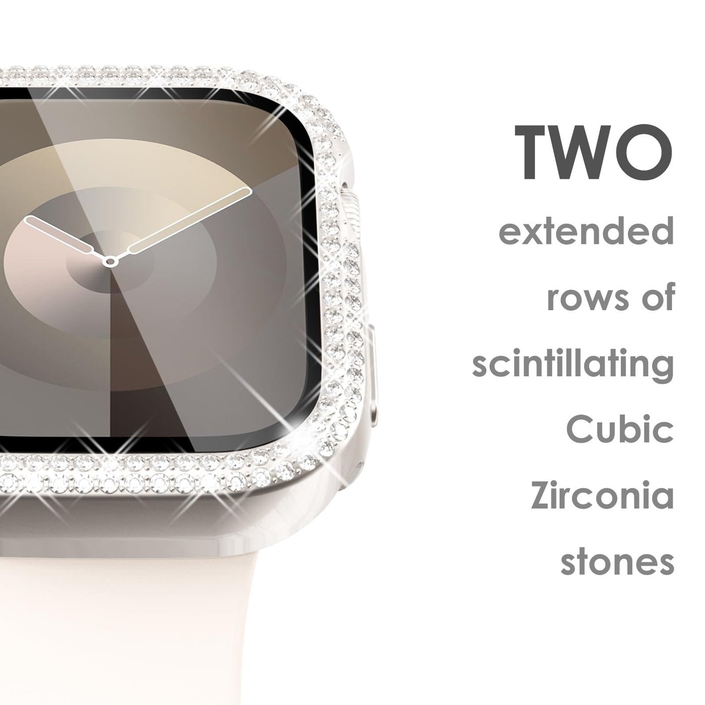 Compatible With Apple Watch Series 9 Series 8 Series 7 41Mm; Apple Watch Case With Tempered Glass Screen Protector; Switch Up The Look Of Your Apple Watch To Match Clothing Or Jewelry Easily And Quickly. | Approximately 300 Crystals- Apple Watch Jewelry Case Featuring A Quadruple Scintillating Cubic Zirconia Stone, Perfect For Upgrading A Casual Outfit Or Complementing A Luxurious Evening Look. | Tempered Glass Screen Protector- Its Tempered Glass Shield Is Made From The Same Protective Film Material Used To Military Aircrafts; Full Cover Protective Case Provides Daily Protection Against Scratches And Reduce Chances Of Damage To Your Screen From Impact Forces And Drops. | Sensitive Touch- Only 0.1Mm Thickness Cover Maintains Apple Watch'S Original Response Sensitivity, Ensuring Quick App Launching; Apple Watch Case Snap Onto Your Device Simply, Buttons Are Easy To Touch; No Need To Take Off The Case When Charging The Watch. | 18 Month Conditionally Refund Or Resend With Any Quality Problems, Life-Time Friendly Customer Service.