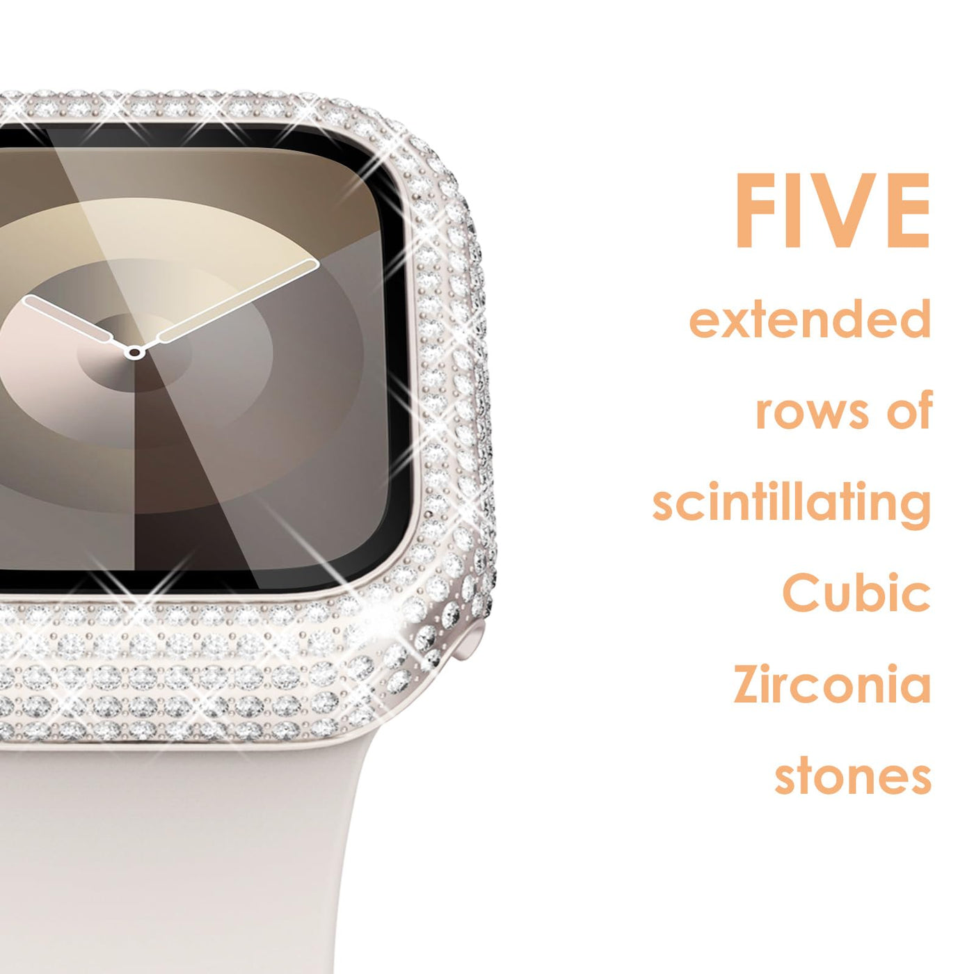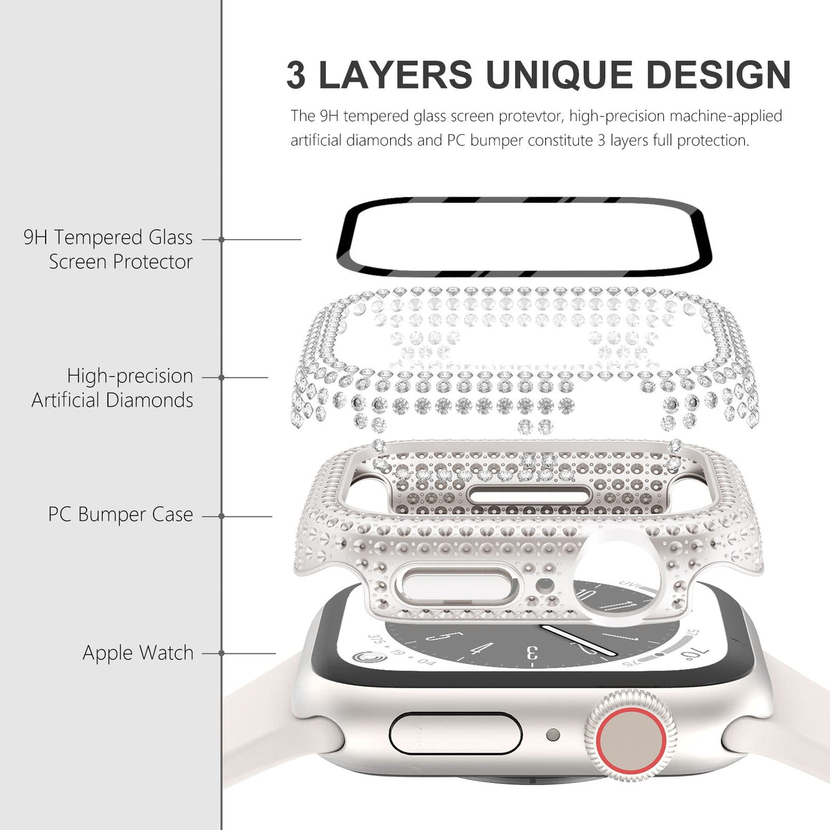 Compatible With Apple Watch Series 9 Series 8 Series 7 Screen Protector 45Mm, Apple Watch Case With Tempered Glass Screen Protector. | Over 400 Crystals- Apple Watch 7 Jewelry Case Featuring Five Rows Of Scintillating Cubic Zirconia Stones, Perfect For Upgrading A Casual Outfit Or Complementing A Luxurious Evening Look. | Tempered Glass Screen Protector- Its Tempered Glass Shield Is Made From The Same Protective Film Material Used To Military Aircrafts; Full Cover Protective Case Provides Daily Protection Against Scratches And Reduce Chances Of Damage To Your Screen From Impact Forces And Drops. | Sensitive Touch- Only 0.1Mm Thickness Cover Maintains Apple Watch 7'S Original Response Sensitivity, Ensuring Quick App Launching; Apple Watch Case Snap Onto Your Device Simply, Buttons Are Easy To Touch; No Need To Take Off The Case When Charging The Watch. | 18 Month Conditionally Refund Or Resend With Any Quality Problems, Makes A Perfect Gift For Someone Who Loves To Glam Up Their Everyday Accessories Or For Yourself.