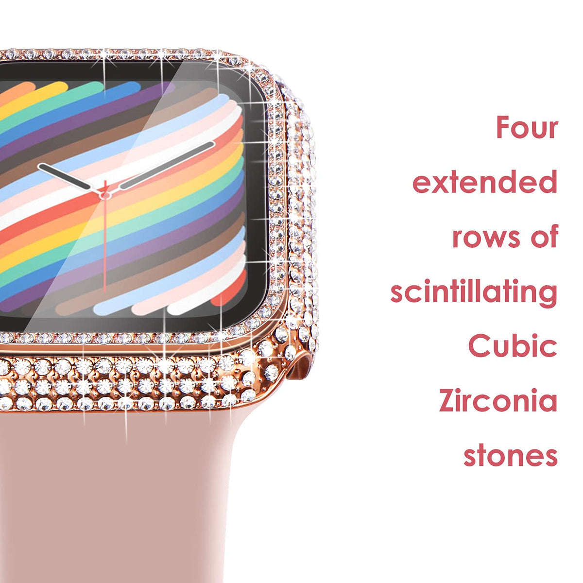 Compatible With Apple Watch 40Mm Series 6/5/4; Apple Watch Case With Tempered Glass Screen Protector. | Approximately 300 Crystals- Apple Watch Jewelry Case Featuring A Quadruple Scintillating Cubic Zirconia Stone, Perfect For Upgrading A Casual Outfit Or Complementing A Luxurious Evening Look. | Tempered Glass Screen Protector- Its Tempered Glass Shield Is Made From The Same Protective Film Material Used To Military Aircrafts; Full Cover Protective Case Provides Daily Protection Against Scratches And Reduce Chances Of Damage To Your Screen From Impact Forces And Drops. | Sensitive Touch- Only 0.1Mm Thickness Cover Maintains Apple Watch'S Original Response Sensitivity, Ensuring Quick App Launching; Apple Watch Case Snap Onto Your Device Simply, Buttons Are Easy To Touch; No Need To Take Off The Case When Charging The Watch. | 18 Month Conditionally Refund Or Resend With Any Quality Problems, Life-Time Friendly Customer Service.