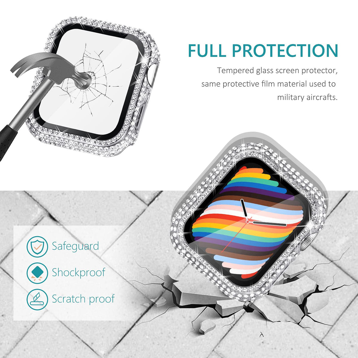 Compatible With Apple Watch 42Mm Series 3/2/1; Apple Watch Case With Tempered Glass Screen Protector. | Approximately 300 Crystals- Apple Watch Jewelry Case Featuring A Quadruple Scintillating Cubic Zirconia Stone, Perfect For Upgrading A Casual Outfit Or Complementing A Luxurious Evening Look. | Tempered Glass Screen Protector- Its Tempered Glass Shield Is Made From The Same Protective Film Material Used To Military Aircrafts; Full Cover Protective Case Provides Daily Protection Against Scratches And Reduce Chances Of Damage To Your Screen From Impact Forces And Drops. | Sensitive Touch- Only 0.1Mm Thickness Cover Maintains Apple Watch'S Original Response Sensitivity, Ensuring Quick App Launching; Apple Watch Case Snap Onto Your Device Simply, Buttons Are Easy To Touch; No Need To Take Off The Case When Charging The Watch. | 18 Month Conditionally Refund Or Resend With Any Quality Problems, Life-Time Friendly Customer Service.