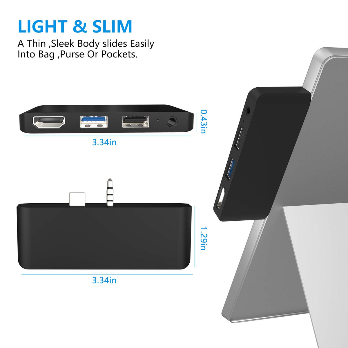 The Usb Hub Combo Surface Go Adapter Fits Perfectly With Microsoft Surface Go / Surface Go 2/Surface Go 3.4K High Definition:The Surface Multiple Hdmi Hub Adapter Offers 4K / 2K @ 30Hz High Definition 1080P Video Transmission Via The 4K Hdmi Port. Regardless Of Whether You Are In Meetings Or In The Home Theater, The Small Device Makes Every Sensual Experience Even Better.3.5 Mm Audio / Headphone Connection:Using This 4-In-1 Type C Hub Will Not Stop Your Charging Port And It Has A 3.5Mm Audio / Headphone Jack So You Can Keep Using Your Headphones While Using This Hub Adapter .System Compatibility:Windows 2000 / Me / Xp / Vista / 7/8/10 / Mac Os 10.X System.Note:Vthe Usb Hub Combo Surface Go Adapter Fits Perfectly With Microsoft Surface Go / Surface Go 2/Surface Go 3.Vwhen The Computer Is Connected To The Product, Please Be Careful Not To Wear A Case Or Other Computer Accessories That Obstruct The Interface Connection To Avoid The Product Interface And The Computer Being Absent And Not Usable For Normal Use.Vwhen Connecting Hdmi To The Display, Check To See If The Interface Is Loose And Connect It Firmly. Please Check Whether The Connected Hdmi Display Port Is Correct. Some Display Ports Have Multiple Hdmi Ports And Need To Set The Correct Signal Source.Only For Surface Go / Go 2/Go 3.Package:1 * 4 In 1 Surface Go Usb Hub.24 Months Manufacturer'S Warranty And Free Lifetime Technical Support.