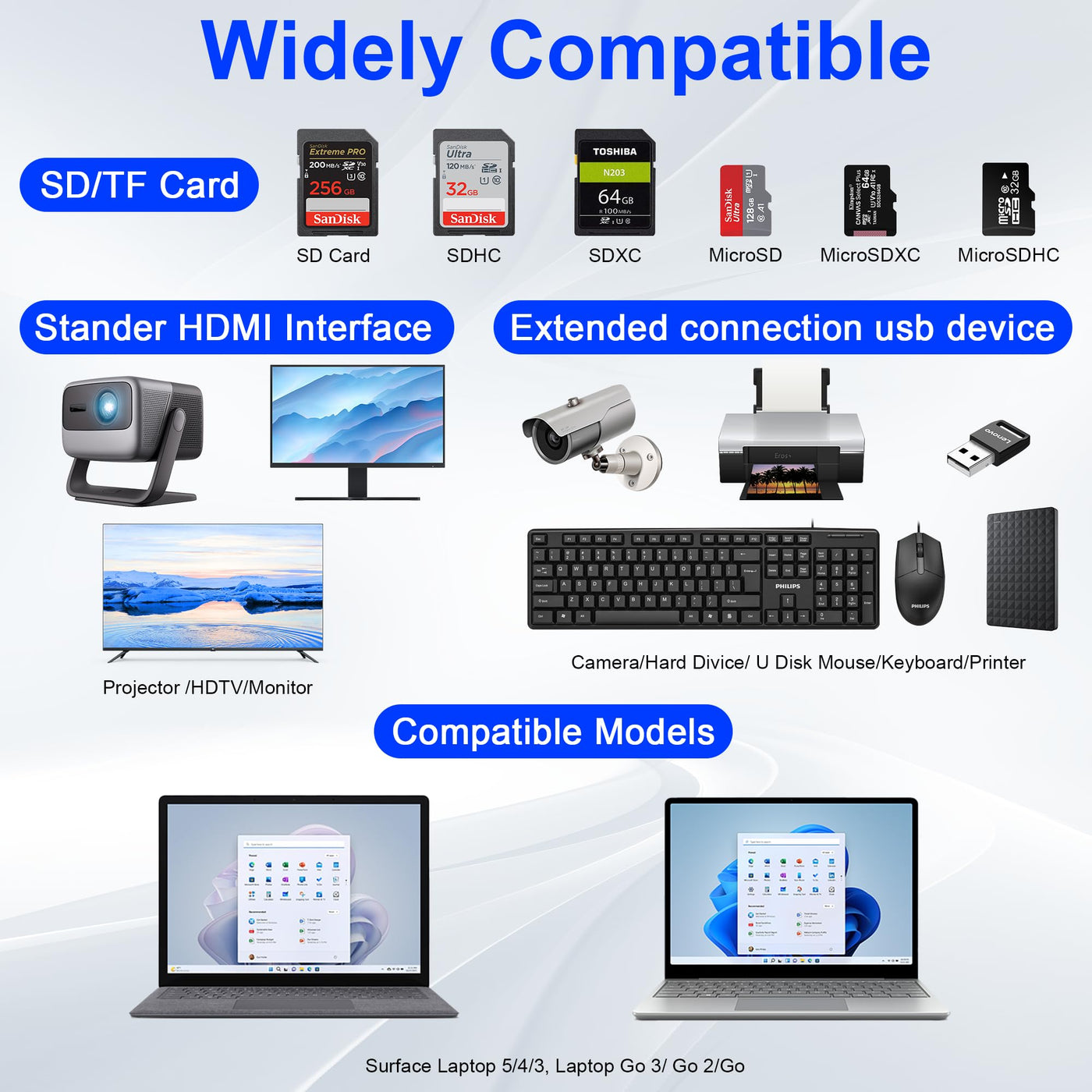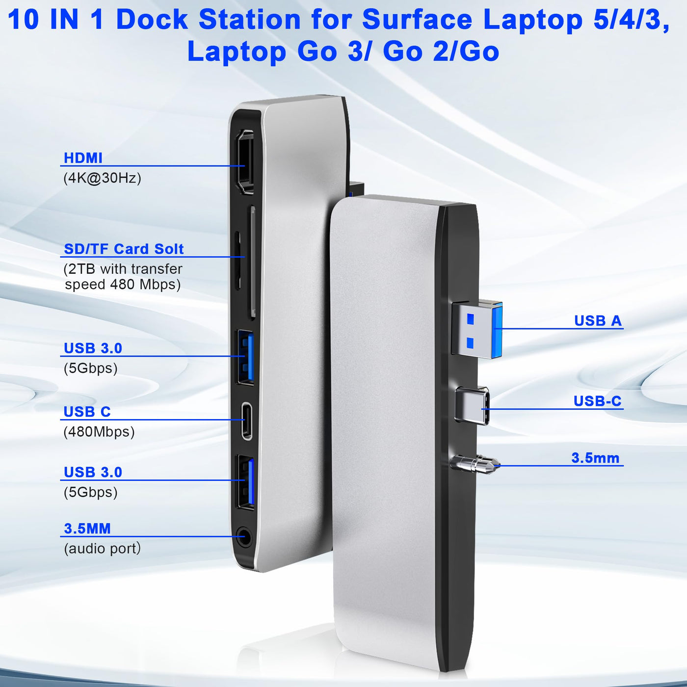 Surface Laptop 5/4/3 Hub Docking Station, Surface Laptop Accessories (4K@30Hz Hdmi +2*Usb 3.0 +Usb C +Sd/Tf Card Slot +3.5Mm Aud