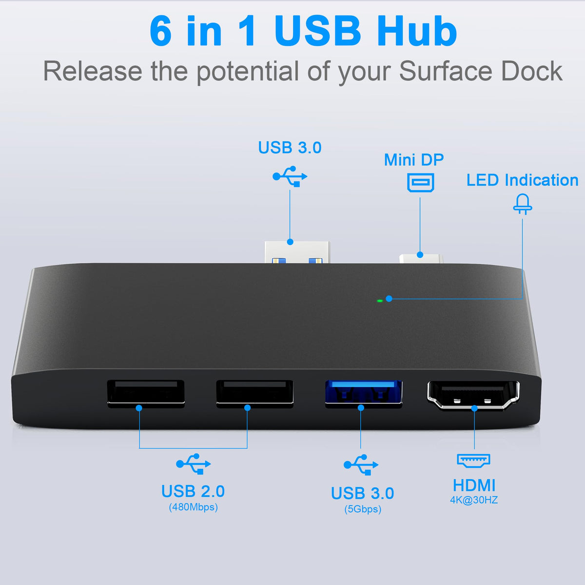 Smart Choice For Your Surface Pro 4/5/6 Docking Station :&Nbsp;Improve Work Efficiency&Nbsp;1X 5Gbps Usb 3.0 Ports: Transfer Faster, Saving Plenty Of Your Time And Enjoy Data Transmission In Seconds.2X Usb 2.0, Speed Up To 480Mb/S, It Allows You To Connect Keyboard Or Mouse Without Any Lag.&Nbsp;&Nbsp;Connect More You Want1. 5 Gbps Transfer Speed2. Hd 4K@30Hz Display&Nbsp;Wide Support1. Usb3.0 Read And Write Rate, Maximum Support 2Tb Capacity.2. Sd Card Reader Port, Supports Sd, Sdxc, Sdhc, Rs-Mmc3. Micro Sd Card Reader (Tf) Port, Supports Micro Sd, Micro Sdhc, Micro Sdxc.&Nbsp;Easy Setup&Nbsp;Plug And Paly,No Need Any Driver Installation When You'Re Using.&Nbsp;This 6-In-1 Docking Station Specially Designed For Microsoft Surface Pro 6/5/4.&Nbsp;What You Get:&Nbsp;1X Surface Pro 6/5/4 Hub Adapter&Nbsp;1X User'S Manual&Nbsp;Kindly Note:&Nbsp;1.Only Compatible With Surface 4/5/6&Nbsp;Incompatible With Surface Surface Laptop 1/2/3/4/Go, Surface Go And Surface Pro X, Surface Book.&Nbsp;2.It' Won'T Fit Your Surface Very Well If You Have A Protective Case On It.&Nbsp;If You Have Any Problems, Please Feel Free To Contact Us. We Are Looking Forward To Offering Our Best Service To You And Your Problem Shall Be Solved Timely.