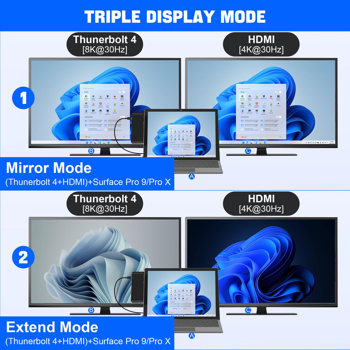 Surface Pro 9 Docking Station With 4K Hdmi, Usb C Thunderbolt 4 (8K@30Hz Video+40G Data+100W Pd), 100M Rj45, 2 Usb 3.0, Sd/Tf Ca