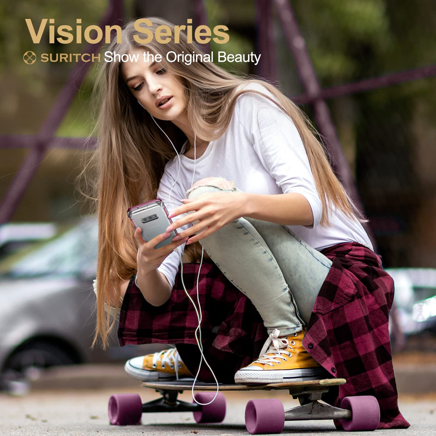Suritch Clear Case For Samsung Galaxy S10E,Built In Screen Protectorsupport Wireless Charging Hybrid Protection Hard Shell+Soft Tpu Bumper Case Shockproof For Samsung S10E 58 (Dark Magenta)