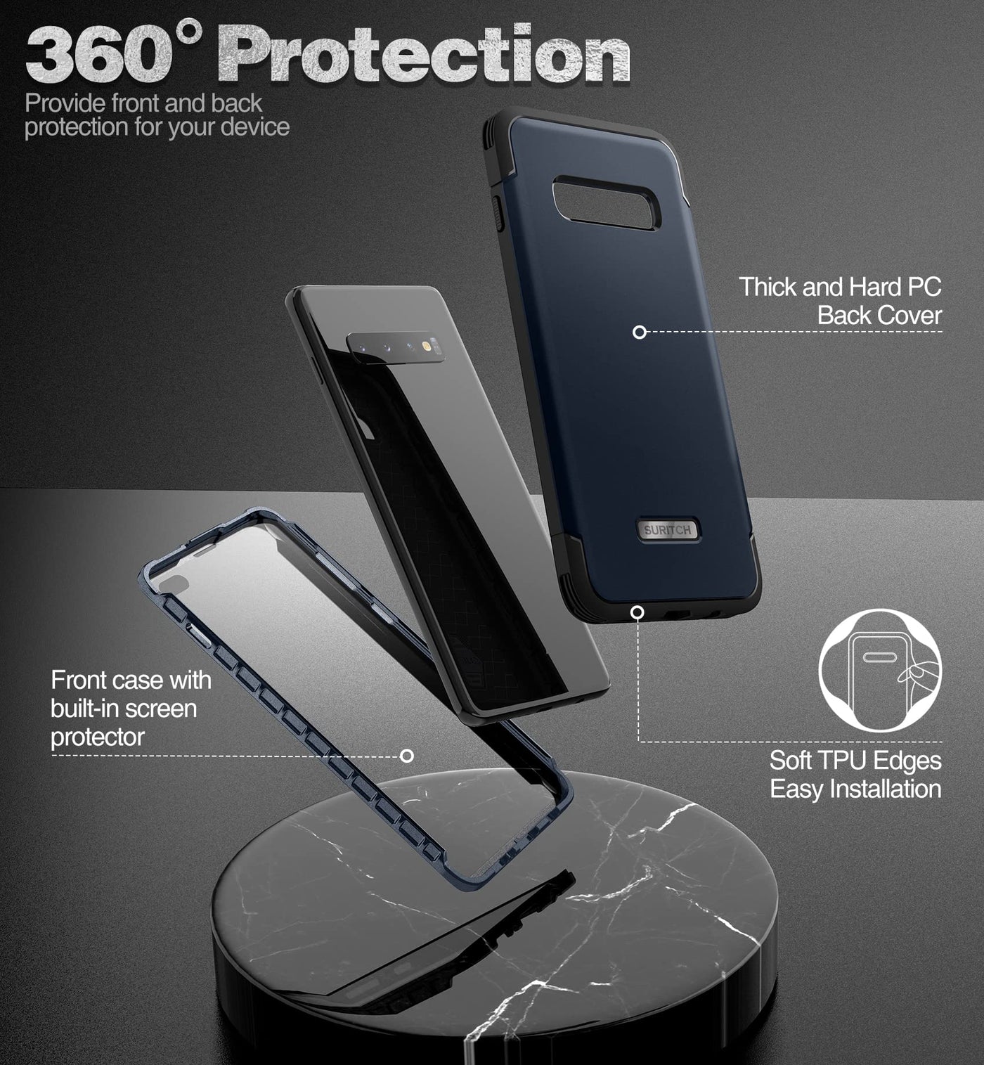 Suritch For Samsung Galaxy S10 Plus Case, [Built In Screen Protector] 360