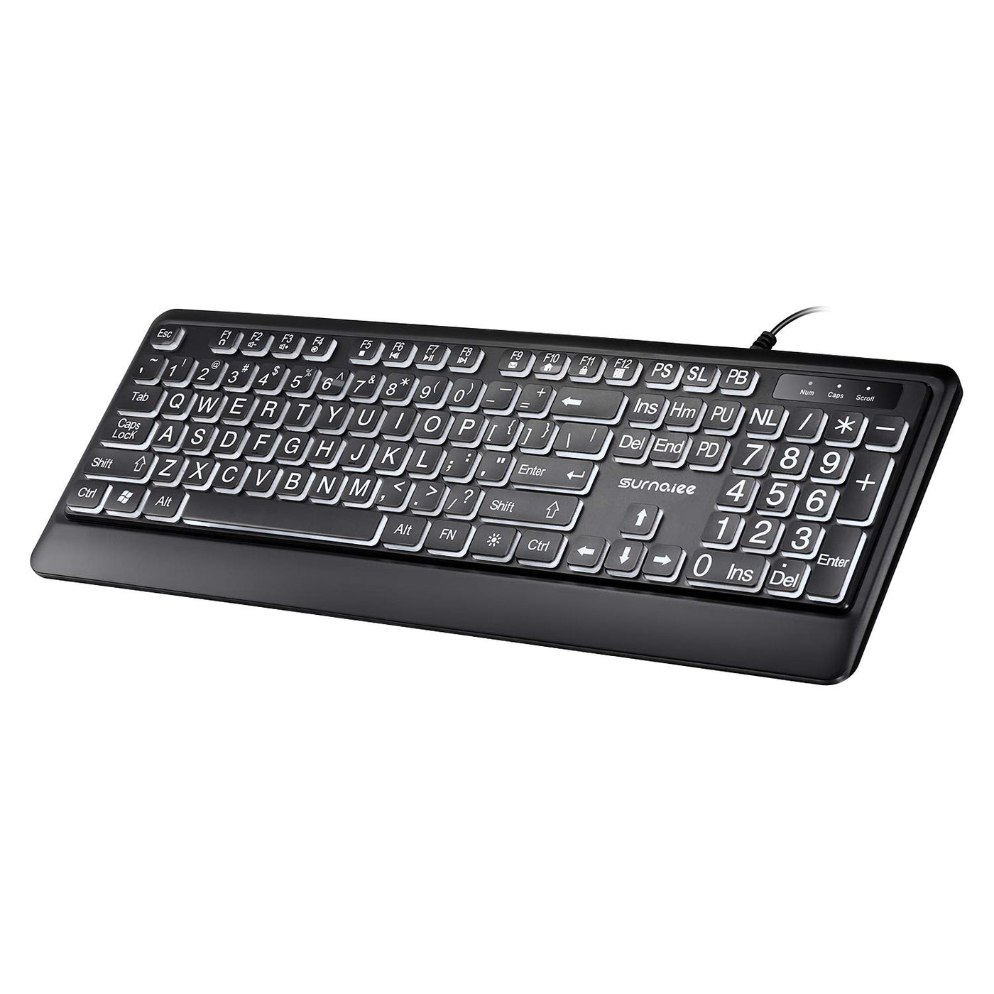 Surnqiee Large Letter Print Keyboard, 104 Keys Standard Full Size Usb Wired White Led Backlit Computer Keyboard (Kb612)