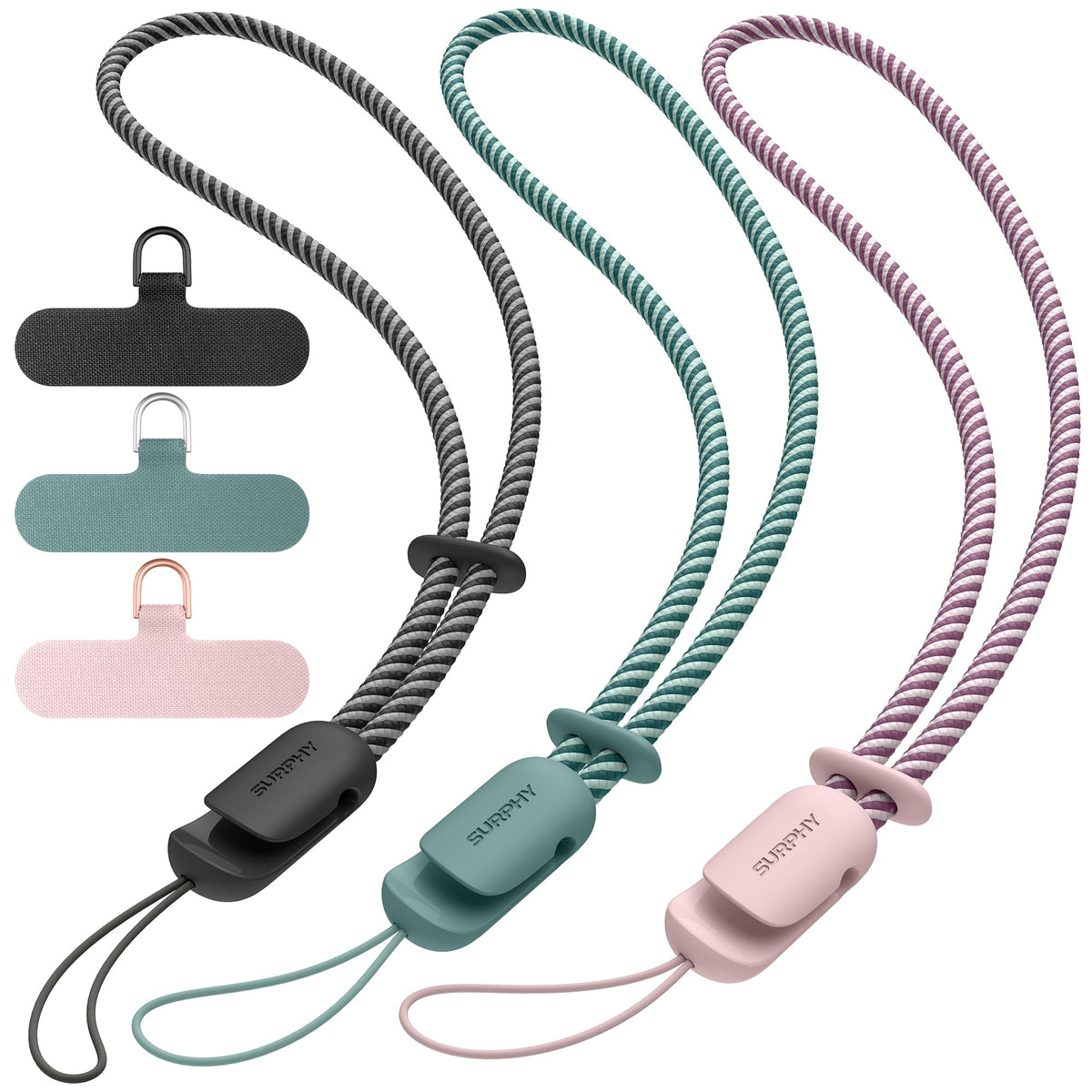Surphy 3 Pack Phone Wrist Strap With Cellphone Tether Tab, Cellphone Lanyard, Anti Theft Phone Strap With 2-Color Braided, Wrist Lanyard For Women And Men, Black & Green & Pink