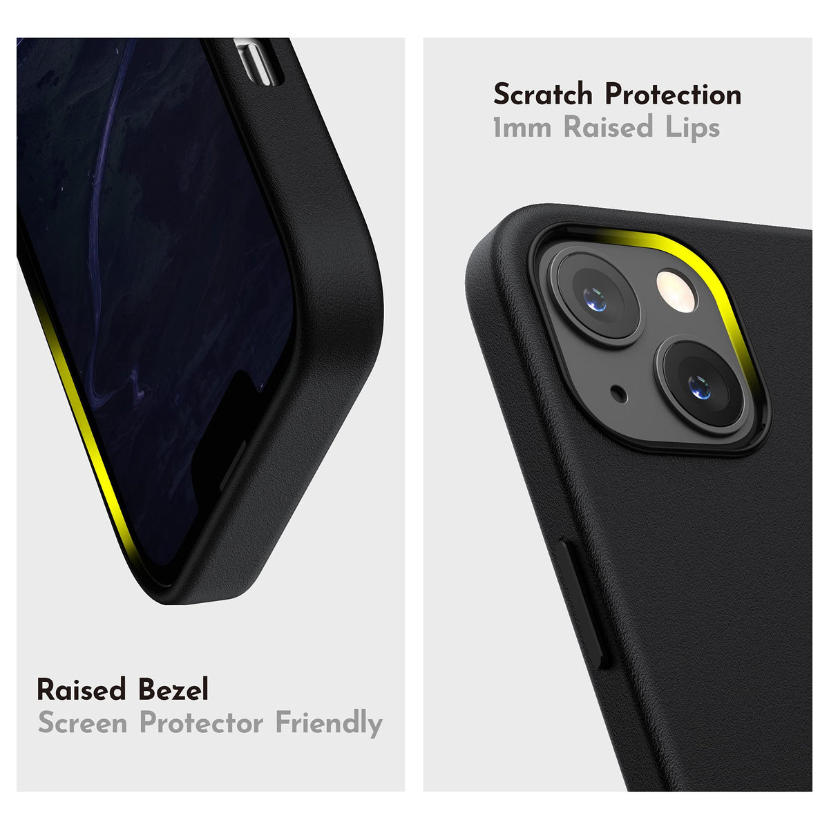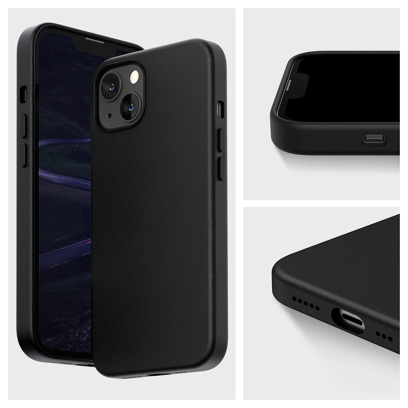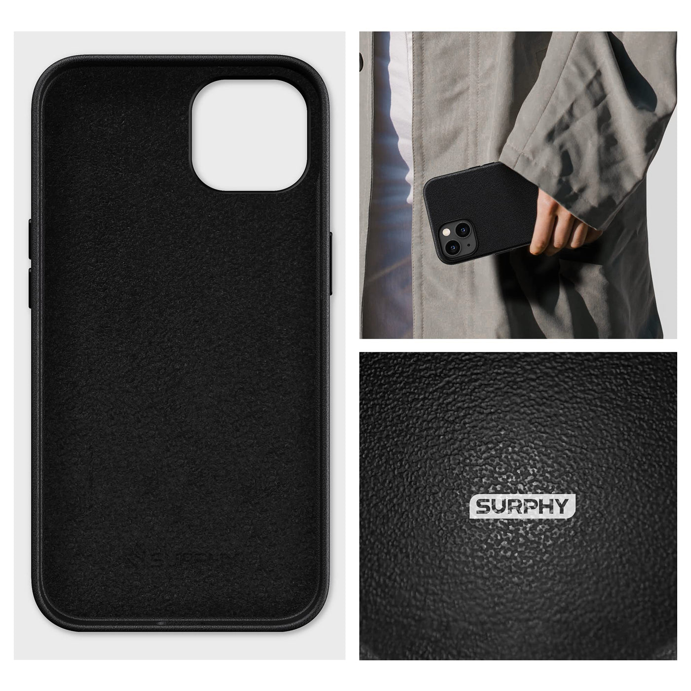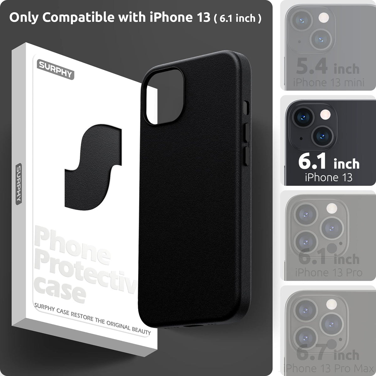 Surphy Faux Leather Case Compatible With Iphone 13 Case (61 Inch 2021), Pu Leather Phone Case (With Metallic Buttons & Microfiber Lining) (Black)