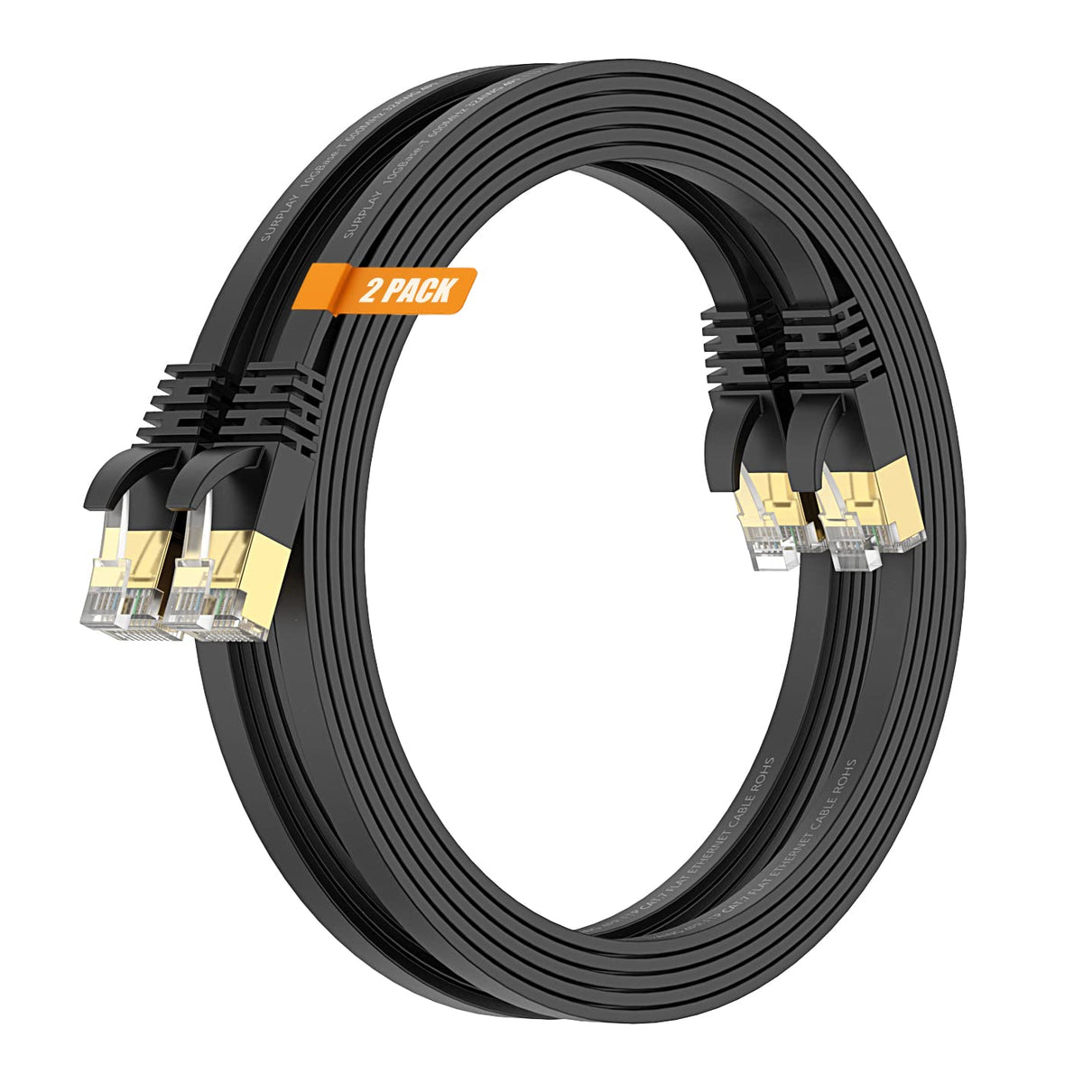 Surplay Cat7 2Pack 15Ft Ethernet Cable Black 10Gbps Shielded & Ground Wire Internet Network Flat Cord,Ultra Slim Gold Plated Rj4