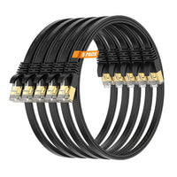 Surplay Cat7 5Pack 1.5Ft Ethernet Cable Black 10Gbps Shielded & Ground Wire Internet Network Flat Patch Cord,Ultra Slim Gold Pla