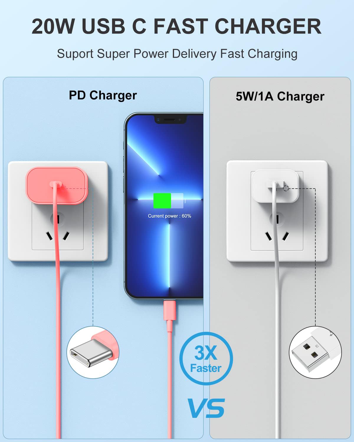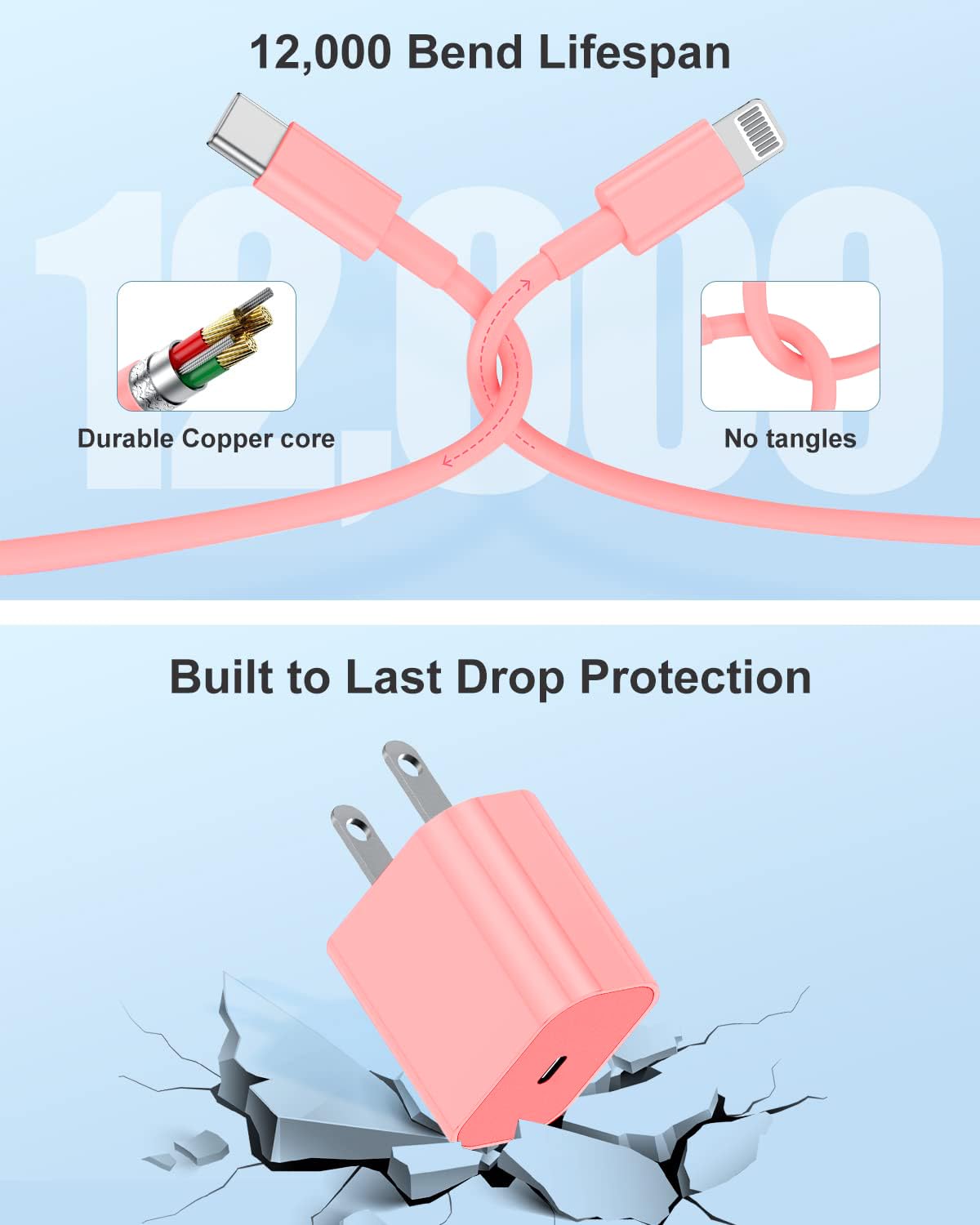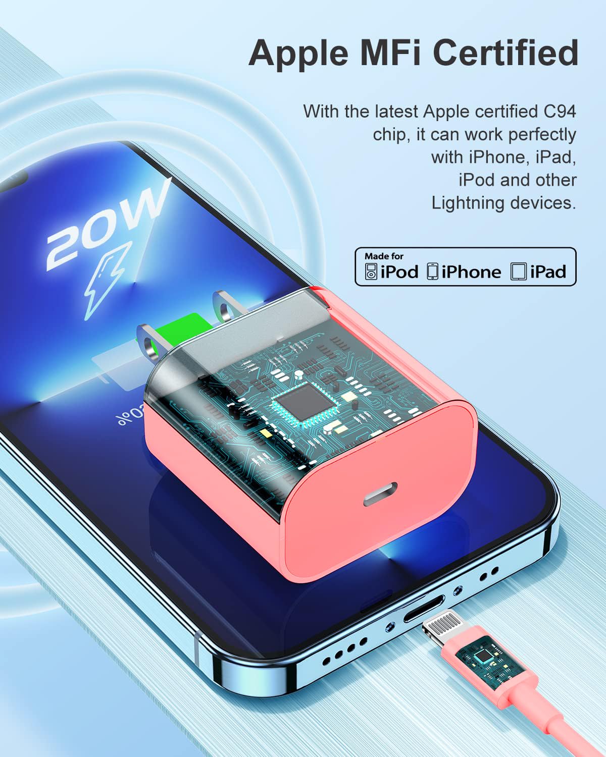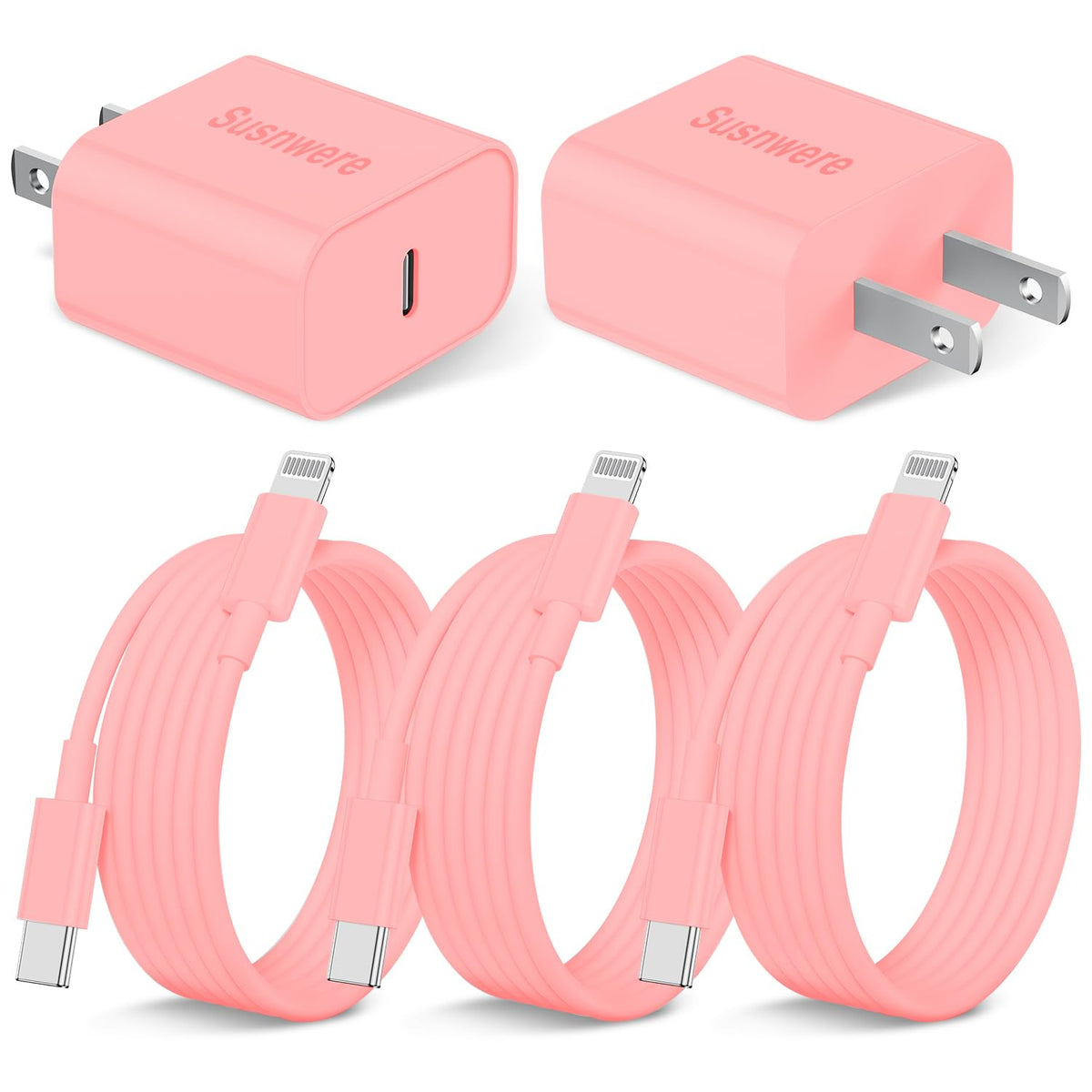 Susnwere Iphone 14 13 12 Charger Fast Charging, 2 Pack 20W Fast Pd Usb C Wall Charger Adapter With 3Pack 6Ft Usb C To Lightning Cable (Mfi Certified) For 14/14 Plus/14 Pro/14 Pro Max/13/ Pink