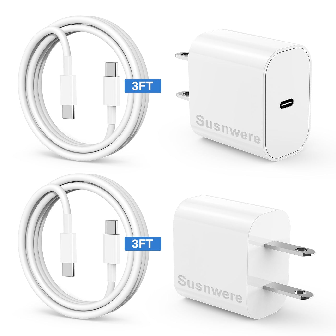 Susnwere Iphone 15 Charger 3 Ft With 20W Usb C Charger Block,2 Pack 20W Fast Wall Charger For 15/15 Pro/Pro Max/Ipad Pro Airpods/Samsung And More, With 2 Pack 3Ft Usb C Cable