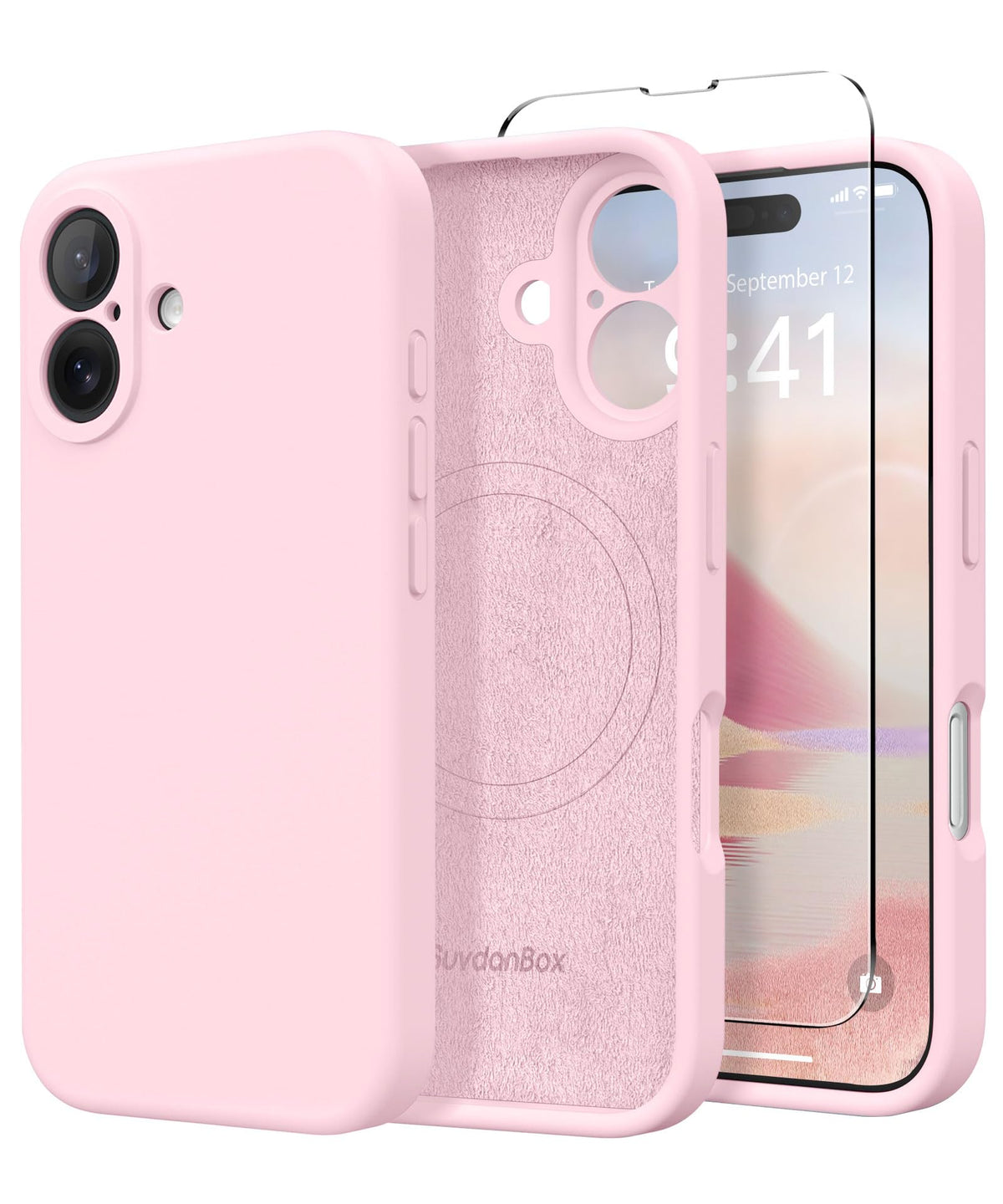 Suydanbox Magnetic For Iphone 16 Case, Compatible With Magsafe, [Full Camera Protection][2 Screen Protectors] Silicone Shockproof Protective Phone Case For Iphone 16 6.1'', Chalk Pink