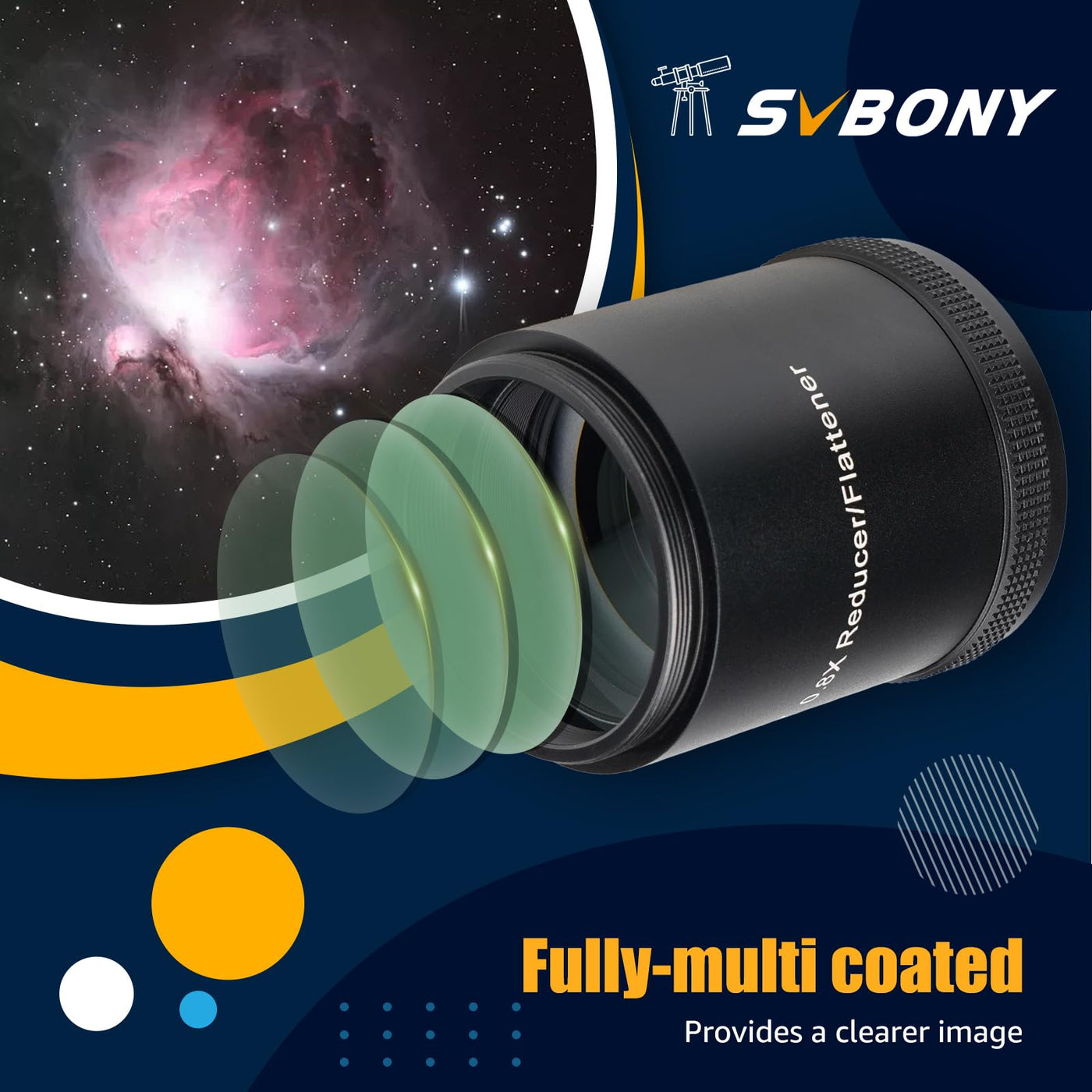 Svbony Sv209 Field Flattener, 0.8X Focal Reducer, Corrects The Field Curvature And A Wider Field Of View, Telescope Accessories