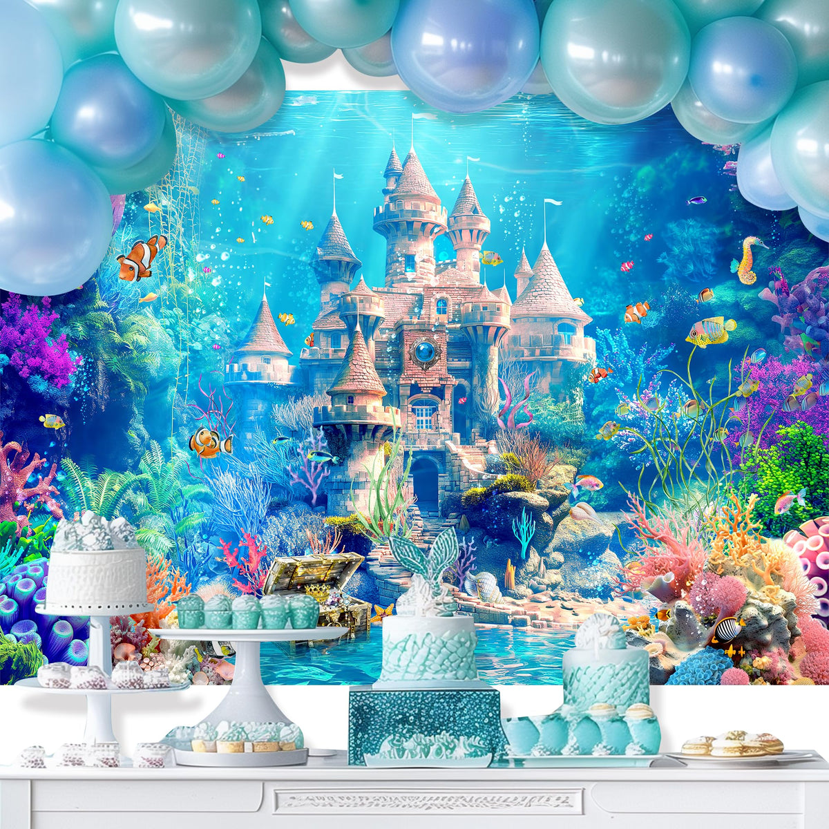 Svbright Ocean Castle Backdrop 7Wx5H Princess Underwater Sea Fairy Birthday Wonderland Aquarium Sea Fish Coral Plant Cute Kids C