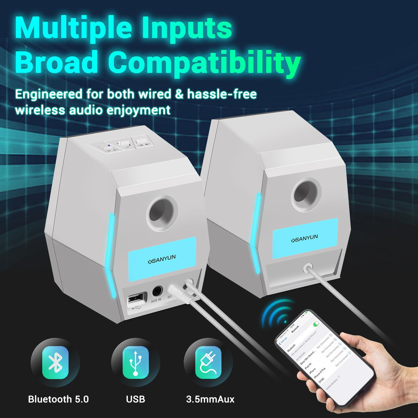 Sw209 36W Computer Gaming Pc Speakers Built In 24Bit Dac Dynamic 3D Surround Sound Bluetooth 5.0 Usb 3.5Mm Aux Inputs Thre