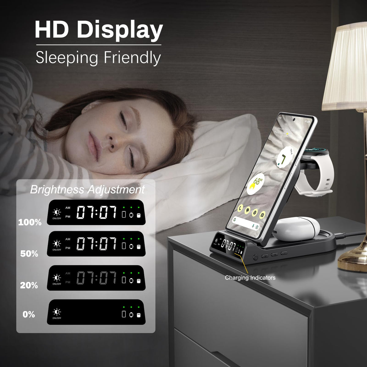 Swanscout Wireless Charging Station For Google Series, 4 In 1 Foldable Wireless Charger Stand For Google Pixel 7/7 Pro/6/6 Pro/5/4/3/Xl, Iphone/Samsung S23 Ultra