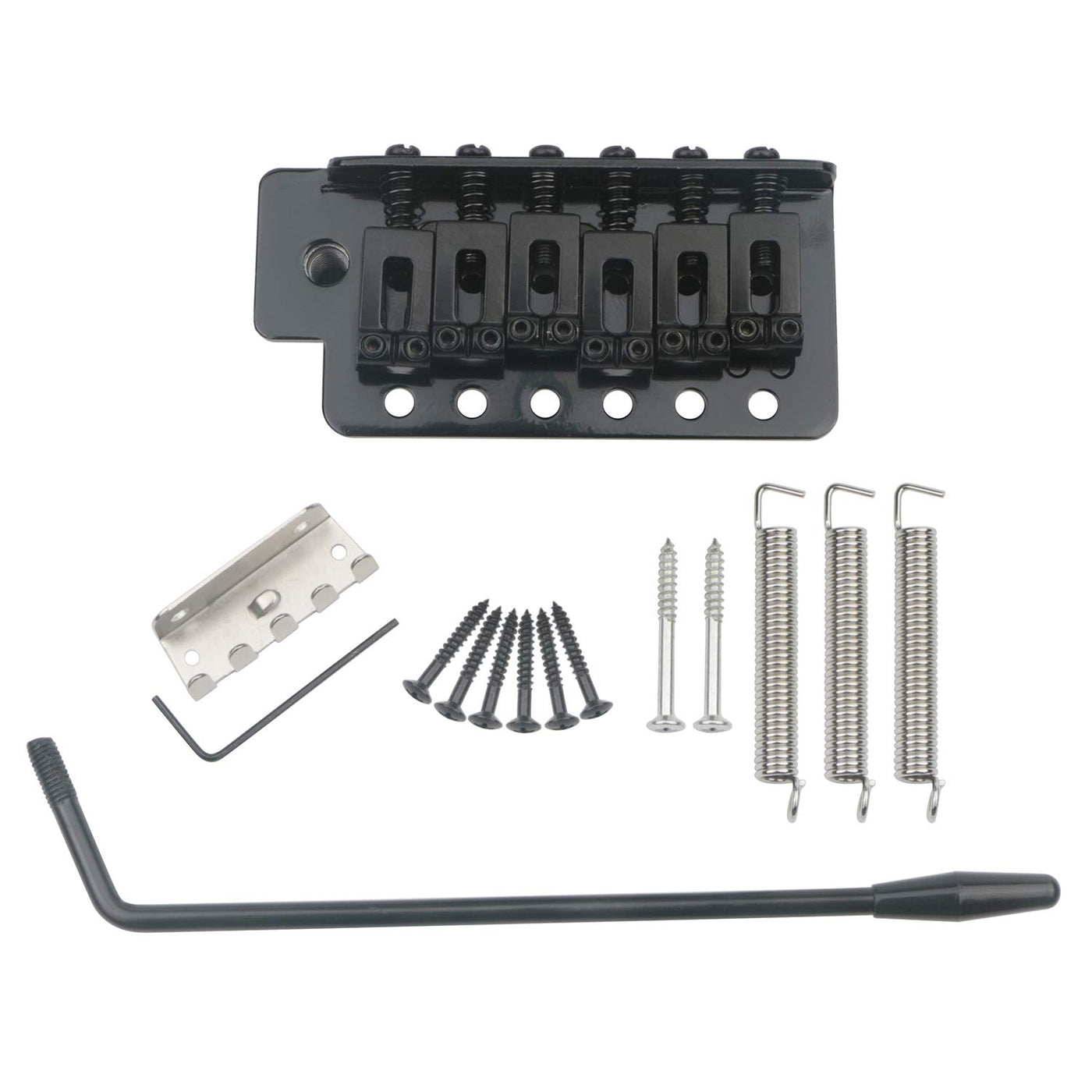 Swhmc Electric Guitar Bridge Tremolo System Set 6 Strings Guitar Tailpiece Replacement With Bar, For Strat(Black)