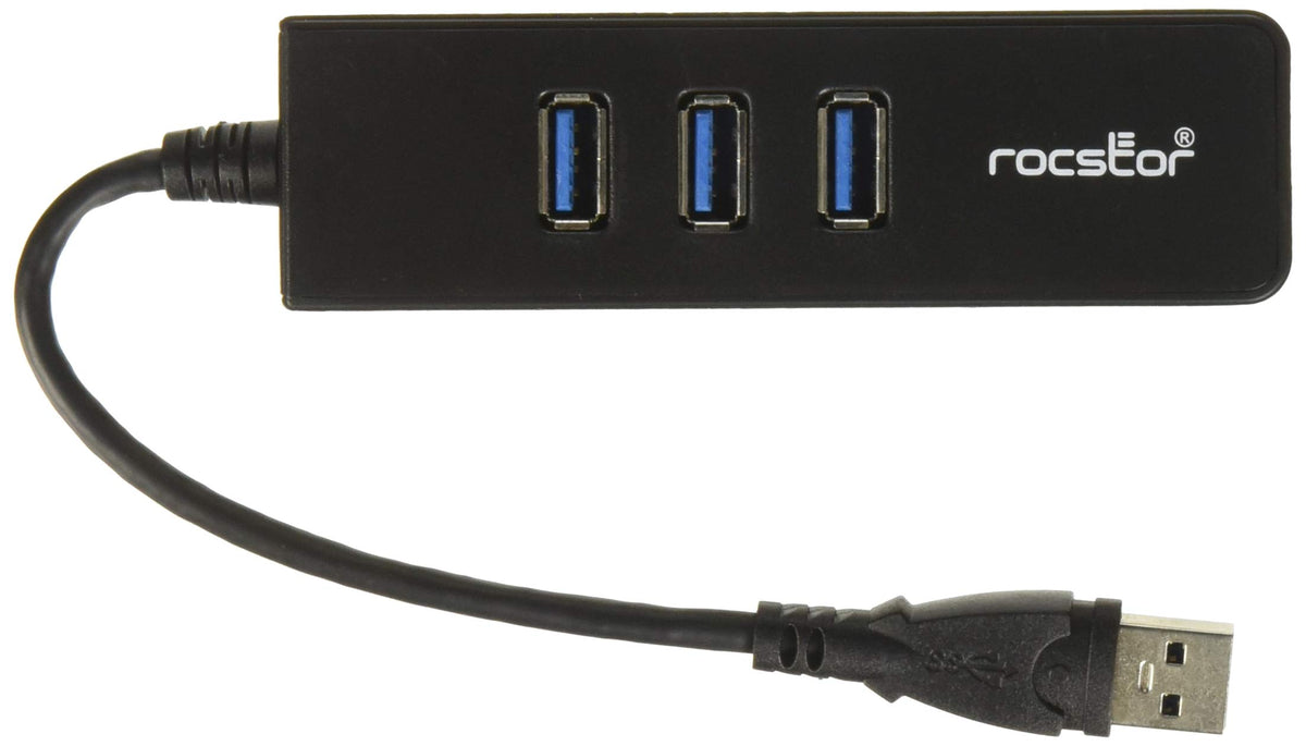 Q: How fast is the data transfer rate on the USB 3.0 ports?A: The Rocstor Hub features USB 3.0 ports that provide data transfer speeds of up to 5Gbps, allowing for quick and efficient data exchanges.
