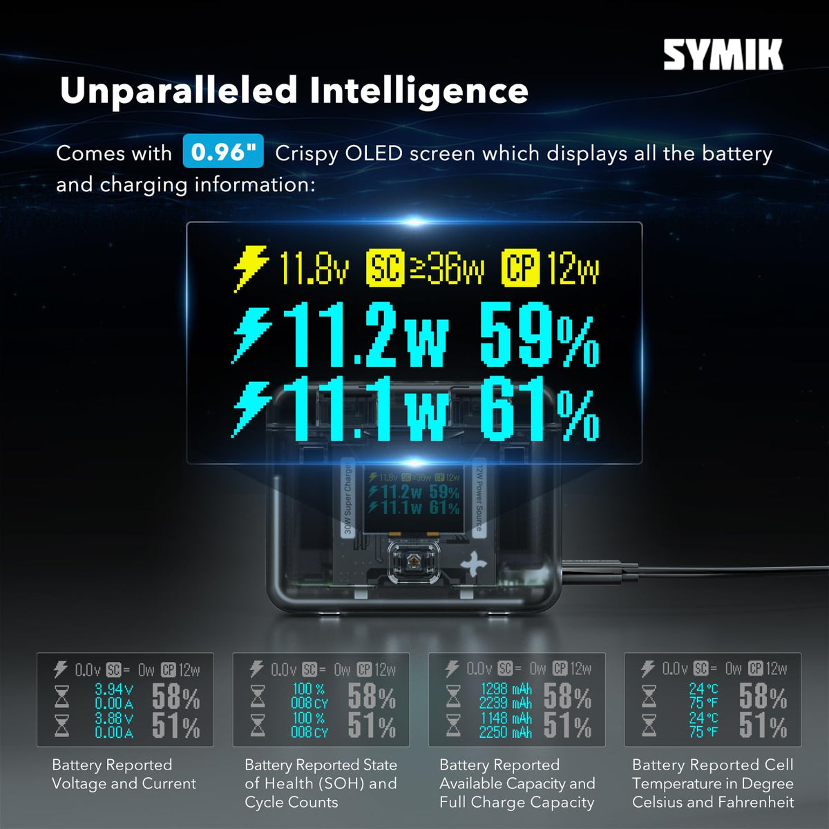 Q: Does the SYMIK Fast Charge Hub include any safety features?A: Yes, the SYMIK Fast Charge Hub includes high and low temperature protection to safeguard your batteries, ensuring safe and efficient charging.