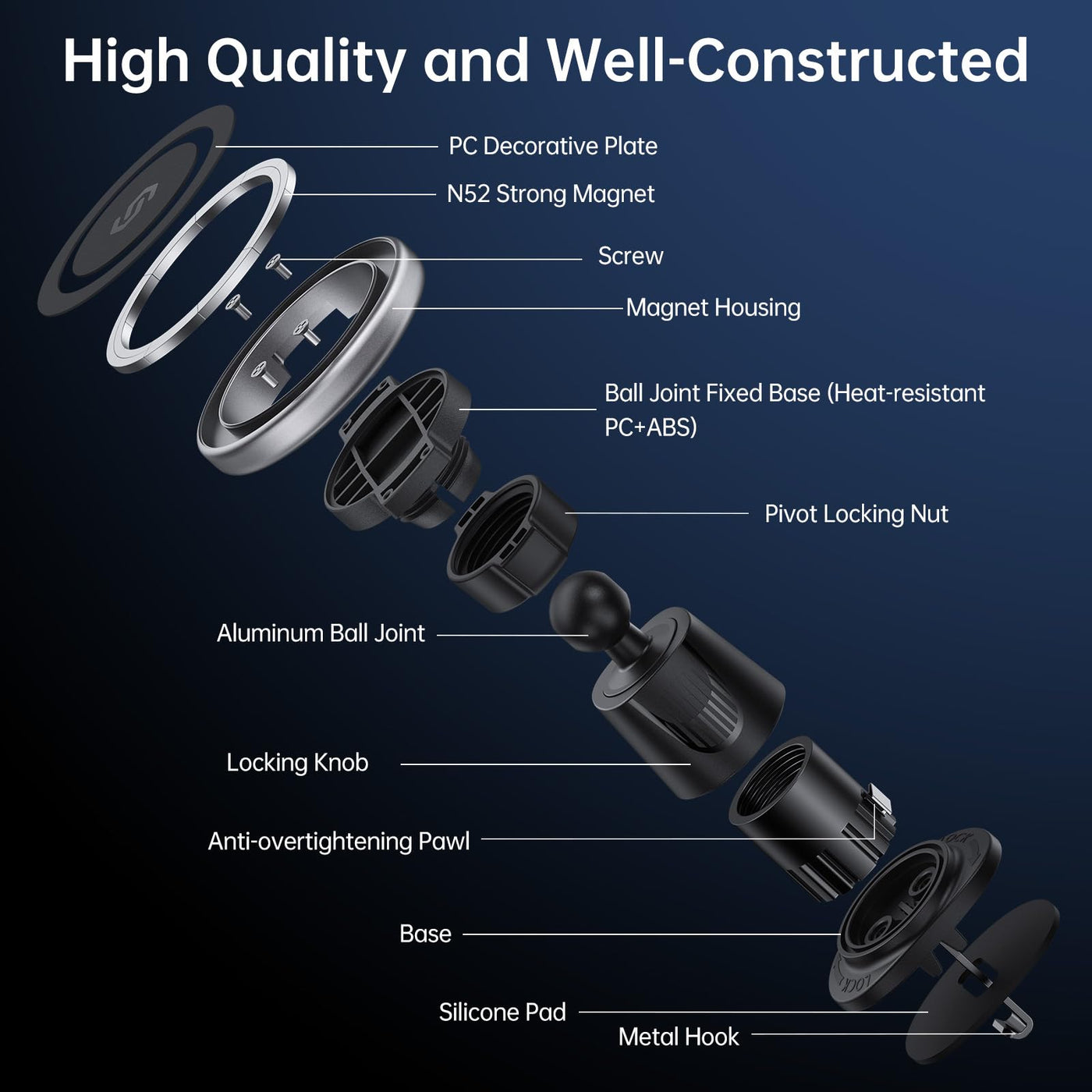 ?Crafted To Perfection?The Syncwire Magsafe Car Vent Mount Is Meticulously Constructed From High-Quality Heat-Resistant Plastic And Metal Hook, Ensuring Unwavering Stability And Reliability. The Surface Boasts Exquisite Metallic Paint Treatments, Providing Both Durability And A Sleek Appearance. | ?Optimal Magnetic Balance? Featuring 16 N52-Grade Neodymium Magnets, The Magsafe Car Mount Showcases A Precisely Tuned Magnetic Force. This Ensures Your Phone Stays Securely Attached. [The Magnetic Force Reaches Up To 12N (1.2 Kg) For Iphones 13-15 Series, 15N (1.5 Kg) For Magsafe-Equipped Phone Cases, And 25N (2.5 Kg) For Metal Rings. Note: For Iphone 11-12 Series, Please Use Magsafe Cases Or Metal Rings. | ?Secure Metal Hook & Anti-Overtightening Design?The Magsafe Car Mount Employs A Solid Metal Hook Design That Tightens Upon Rotation, Ensuring An Exceptionally Strong Hold. The Metal Hook Is 50% Longer Than The Ordinary Version, Compatible With A Wide Range Of Horizontal And Vertical Vent Types. Additionally, Our Clamp Design Integrates An Anti-Overtightening Mechanism, Preventing Vent Blade Damage Caused By Excessive Force During Installation. | ?Easy Placement & Adjustments?Featuring A 360-Degree Rotatable Ball Joint, Our Magsafe Car Phone Mount Offers Unparalleled Adjustability. Effortlessly Fine-Tune Tension Using The Rotating Back Knob To Achieve Your Desired Viewing Angle. Placing Your Phone On The Syncwire Magsafe Car Phone Mount Is A Straightforward One-Step Process, Freeing Your Hands And Enhancing Safety During Calls And Gps Navigation. | ?Minimal Interference?Engineered With A Circular Design, The Magsafe Phone Holder For The Car Ensures Uninterrupted Signal Reception While Reducing Vent Strain And Maintaining Optimal Airflow For Effective Heat Dissipation. Elevate Your Driving Experience Today With The Magsafe Car Air Vent Mount From Syncwire And Enjoy A Driving Journey That'S Both Secure And Dependable. | ?Wide Adaptability?The Magsafe Car Phone Holder Can Place Directly On Iphone 15, 15 Pro, 15 Plus, 15 Pro Max, 14, 14 Pro, 14 Pro Max, 14 Plus, Iphone 13, 13 Pro, 13 Pro Max, 13 Mini, Iphone 12, 12 Pro, 12 Pro Max, 12 Mini & Magsafe Cases. Additionally, It Is Compatible With Non-Magnetic Phones And Standard Phone Cases With Metal Rings (Provided) On Their Backs. | ***Note***: Hook Extension Range 10Mm-25Mm. The Thickness Of The Vent Blade Is Less Than 4Mm. Compatible With Horizontal & Vertical Vents But Not Suitable For Round Vents.