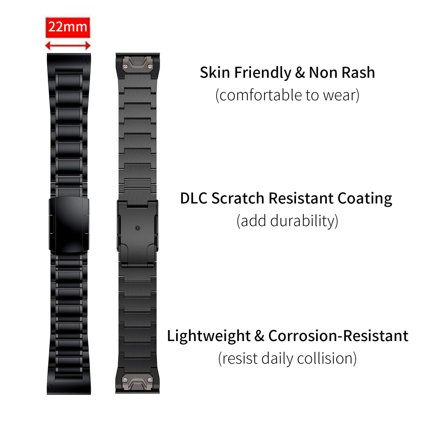 Notice Before Purchase: Please Confirm Your Watch Model And The Original Strap Width Before Buying!! | 22Mm Garmin Band Compatible Device:The 22Mm Band Compatible With Garmin Fenix 8 Amoled 47Mm,Fenix 8 Solar 47Mm,Fenix E 47Mm,Fenix 5, Fenix 5 Plus, Epix 2, Forerunner 935, Forerunner 945, Approach S60, Quatix 5, Quatix 5 Sapphire, Garmin Instinct, D2 Delta, Fenix 6, Fenix 6 Pro And Sapphire Editions, Fenix 7, Fenix 7 Solar, Fenix 7 Sapphire Solar | 26Mm Garmin Band Compatible Device: This 26Mm Titanium Replacement Band Is Compatible With Garmin Fenix Fenix 8 Amoled 51Mm/ Fenix 8 Solar 51Mm/Enduro 3 51Mm/7X/7X Solar/7X Sapphire Solar / 7X Pro / 7X Pro Sapphire Solar / 6X / 6X Pro / 6X Pro Solar / 6X Sapphire / Fenix 5X / 5X Plus / Fenix 3/ 3 Hr / Instinct 2X / Epix Pro 51Mm / Enduro / Enduro 2 / Descent Mk1 Mk2 Mk2I Mk3I 51Mm / D2 Delta Px / D2 Bravo/D2 Charlie/Tactix 7/Tactix 7 Pro/Tactix Delta/Tactix Bravo/Tactix Charli | Premium Titanium Made: Crafted With 94% Premium Grade Titanium Without Itching, Allergies. This Garmin Fenix 7 Band Is Meticulously Designed With Exceptional Durability And Resistance To Wear And Tear. Half Weight Of Stainless Steel Band Ensuring You The Comfort Wearing, Perfect For Your Adventure | Perfect Fit: High Precision Craftsmanship Ensures A Tight And Stable Connection With Your Original Watch Interface, Eliminating Any Gaps. Make Sure Your Watch Band Stays Securely Attached, Providing A Seamless And Comfortable Fit