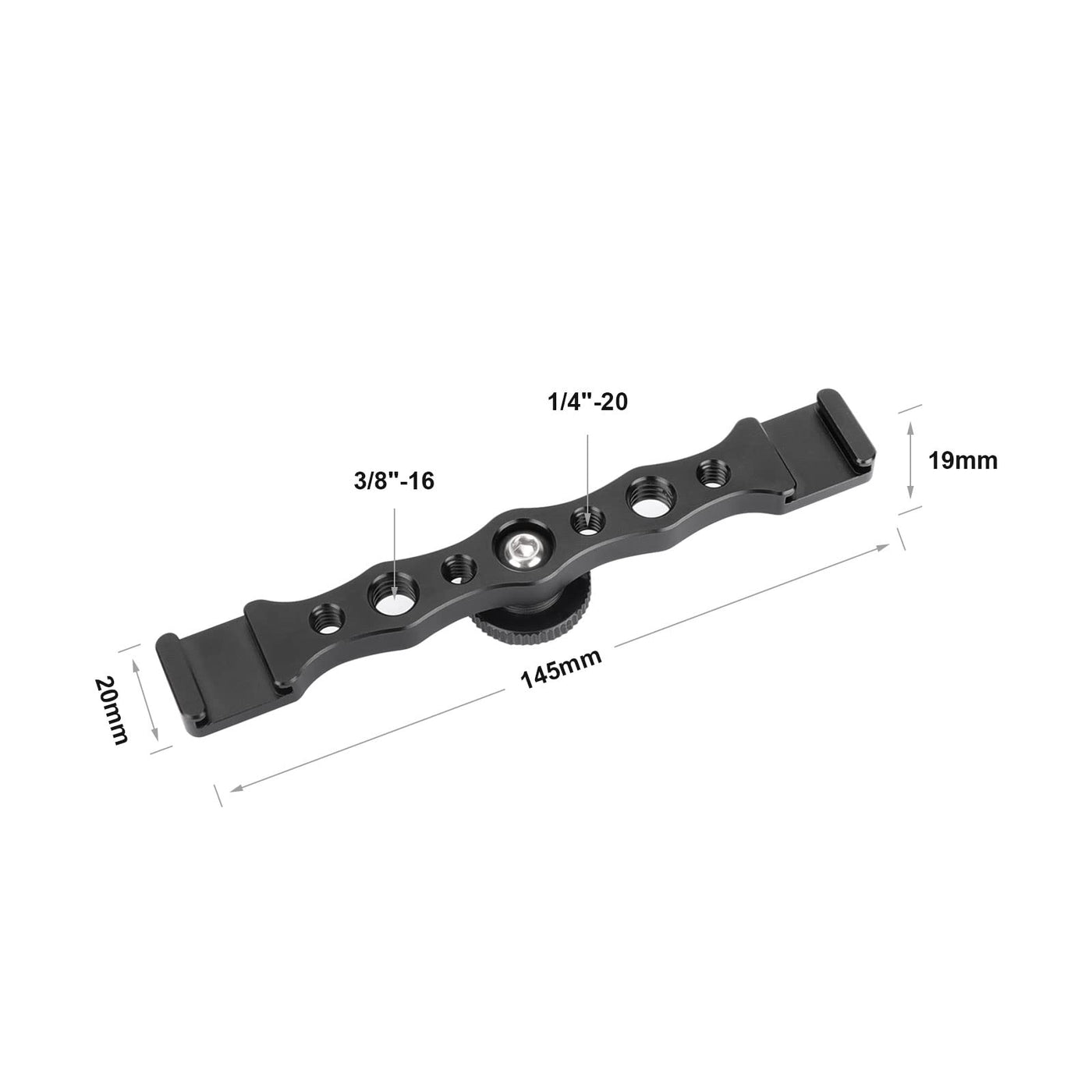 This Setting Is A145Mm Quick-Releaseand Shoe Rack It Is Equipped With Hot Shoe Adapters At Both Ends For Continuous Flashing, Monitoring, Etc., With 1/4'' And 3/8'' Threaded Holes. Net Weight: 47.5G Package Included: 1 X Double Shoe Mount