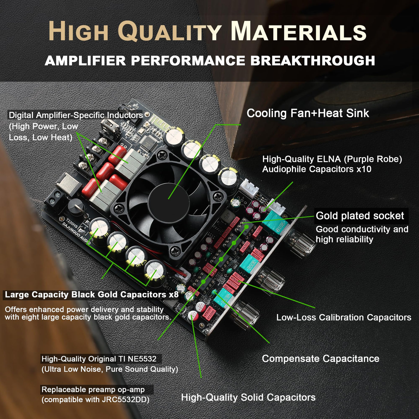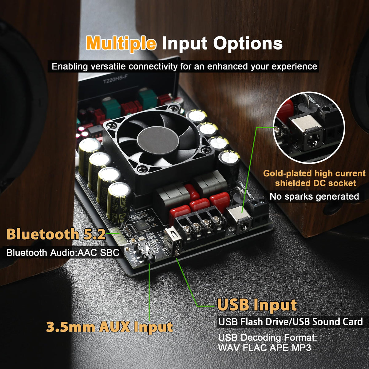 T220Hs 220W+220W Bluetooth Amplifier Board With Treble And Bass Control, 2.0 Channel Stereo Amp Board Dc 12 36V,Bluetooth/Aux/Us