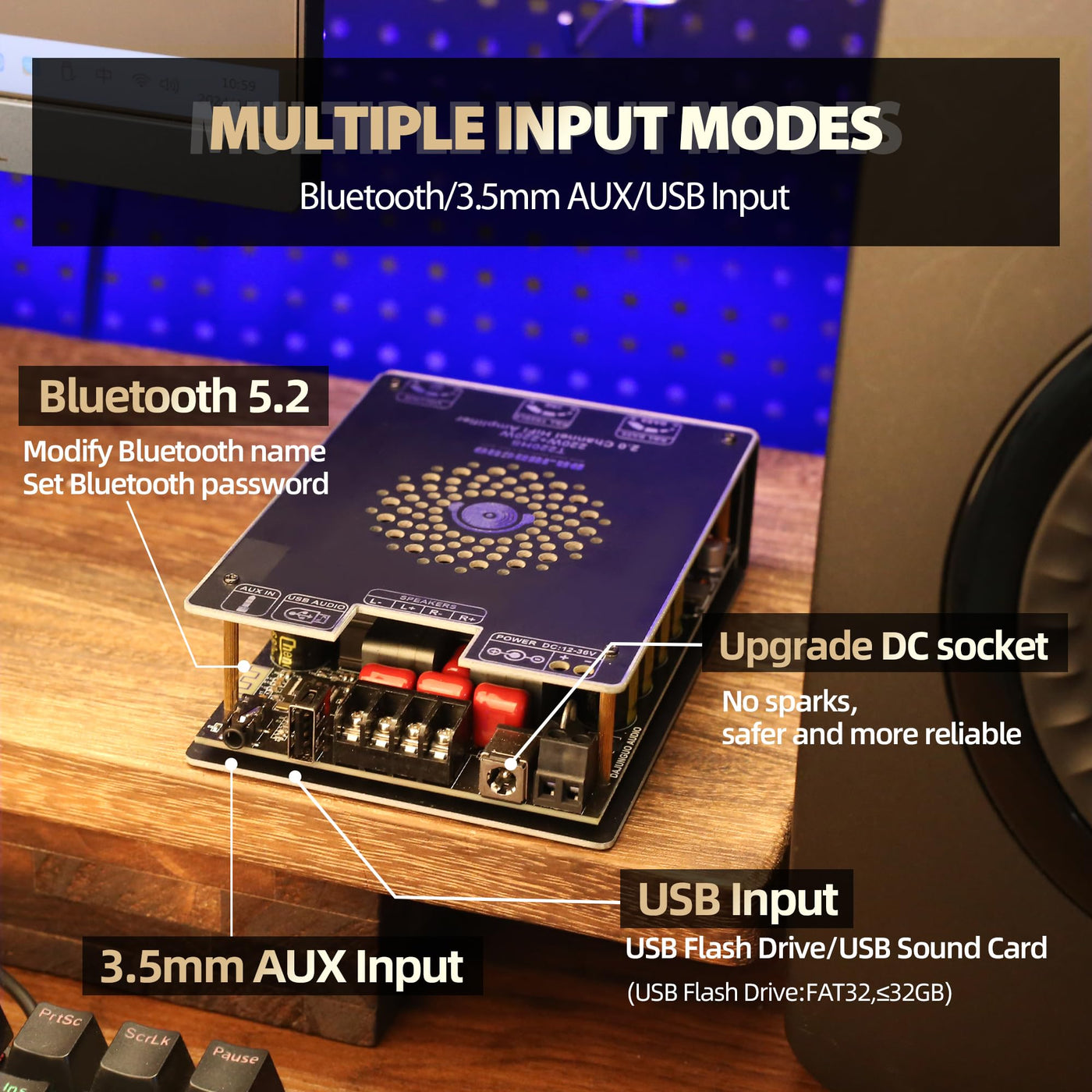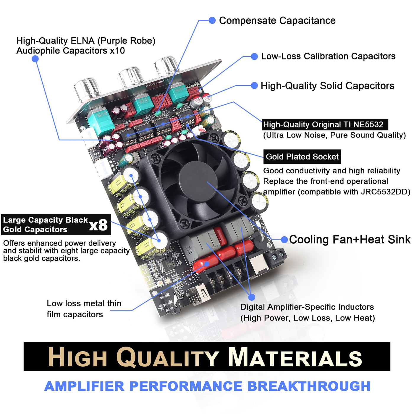 T220Hs Power Amplifier Board With Subwoofer 2.0 Channel 220W 2, 12V 36V Audio Power Amplifier Module With Treble And Bass Contr