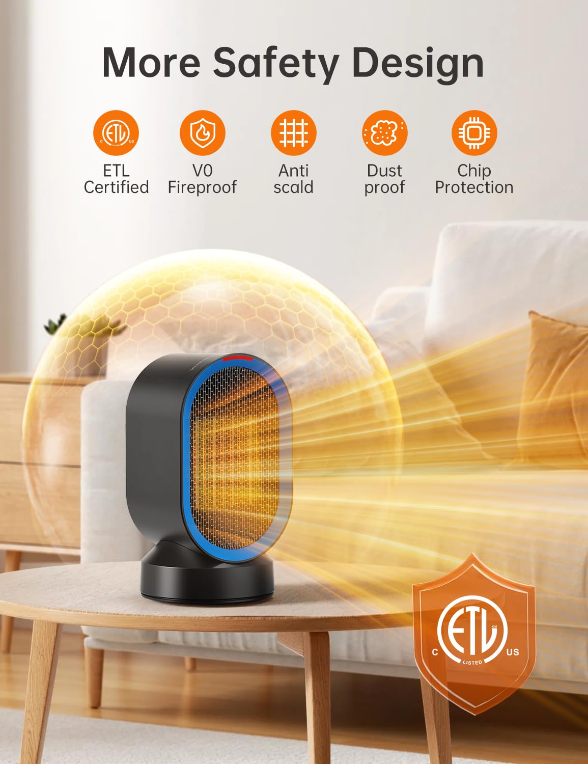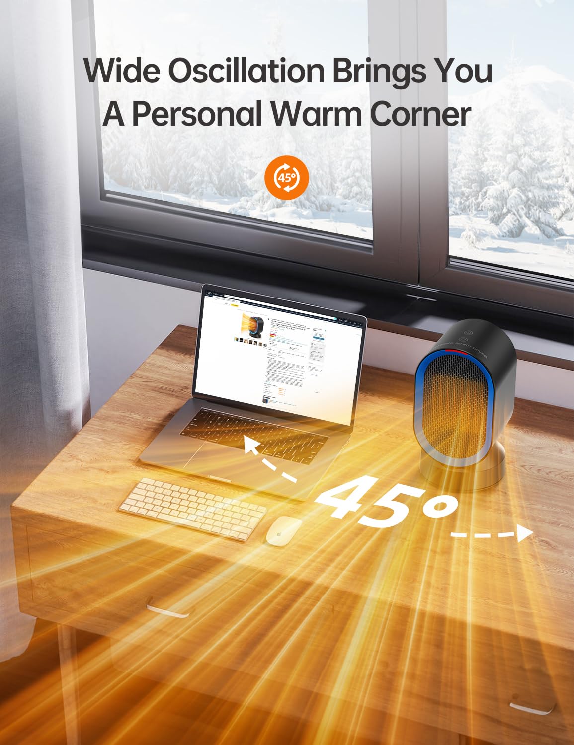 Fast Heating: Equipped With An Advanced Ptc Ceramic Heating Element And High-Speed Fan, This Small Space Heater Blows Out Tons Of Heating Wind In Seconds! This 600 Watts Portable Space Heater Provides Faster And More Efficient Heating Than Traditional Heaters, Quickly Heating Up The Air Surrounding You To Bring You A Warm And Comfortable Experience | 45