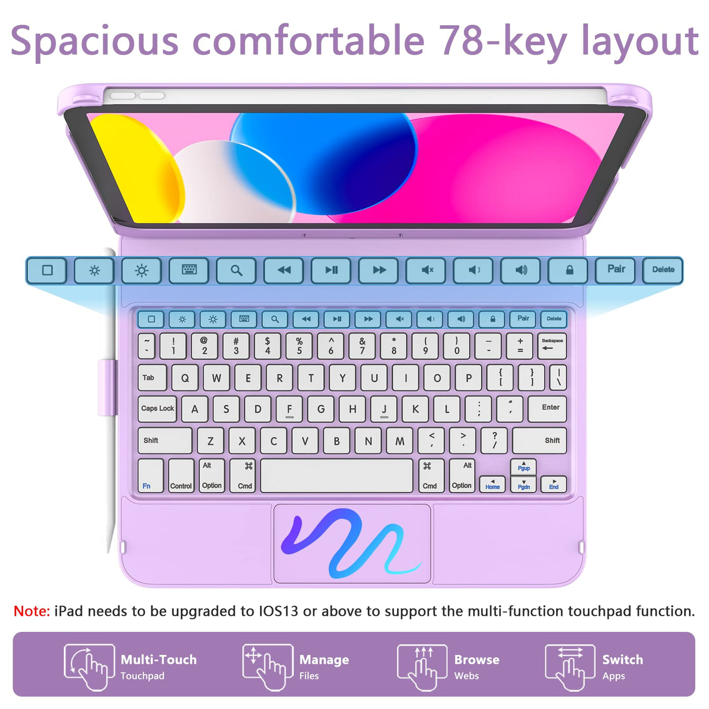 Taiyang For Ipad 10Th Generation Case With Keyboard For Ipad 10.9'' 2022, Touch Keyboard For Ipad 10Th Generation Case -360 Rotatable,Pencil Holder,Touch Trackpad Keyboard Case For Ipad 10Th Gen