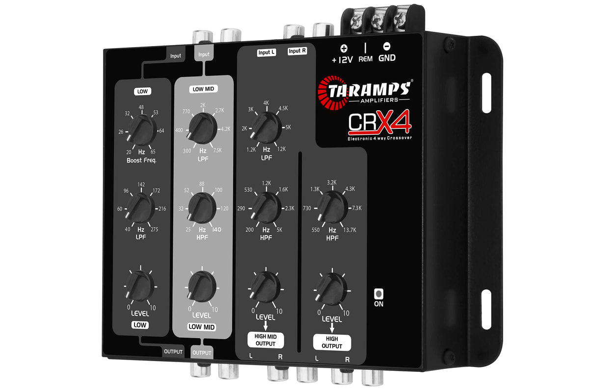 Taramp'S Is One Of The Leading Brands In Car Audio In The World. The Crx4 Compact Crossover Is Designed For The Audio Enthusiast With Competition-Level Sound In Mind. It Delivers Enhanced Audio With Greater Quality, Optimizing Output With Customizable Sound Adjustments. Technical Specs: 12Db / 8Th 4-Way Electronic Crossover Harmonic Distortion (Thd): Less Than 0.01% Maximum Input Level: 8 Volts Maximum Output Level: 8 Volts Separation Between Channels: Greater Than 80Db Working Voltage: 10 To 15.5V Dc Input Impedance: 27K Ohms Output Impedance: 470 Ohms Crosstalk (Separation Between Channels):> 80Db Nominal Consumption: 380 Ma Power Supply: With Dc-Dc Converter Switched Electronic Protection: Reversal Of Polarity Recommended Wiring Gauge Is 1.5Mm For Positive / Negative Wires, And 0.75Mm For Remote Wire Width: 190 Mm Height: 145 Mm Depth: 40 Mm