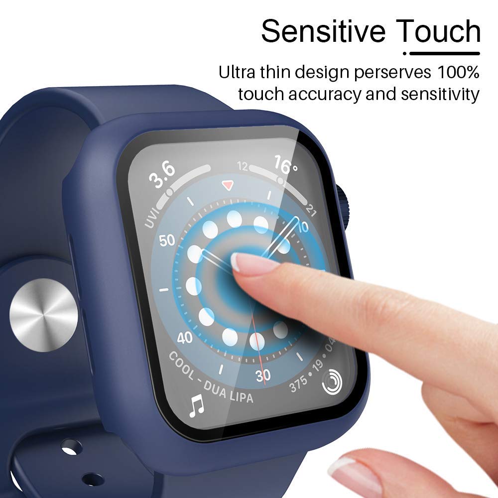 Q: Does the tempered glass screen protector affect touch sensitivity?A: No, the ultra-thin tempered glass screen protector maintains high touch sensitivity, allowing for seamless interaction with your Apple Watch without any hindrance.