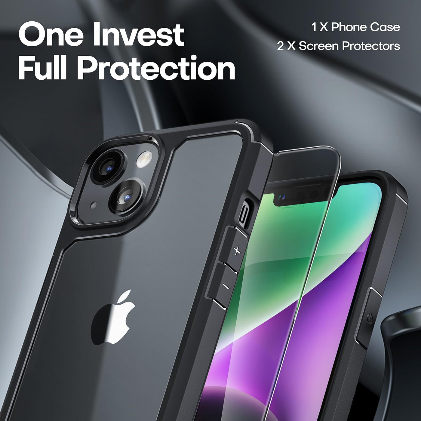 Tauri 3-In-1 Designed For Iphone 14 Case, [Not Yellowing] With 2 Screen Protector, [Military Drop Protection] Shockproof Slim Phone Case For Iphone 14 6.1 Inch-Black