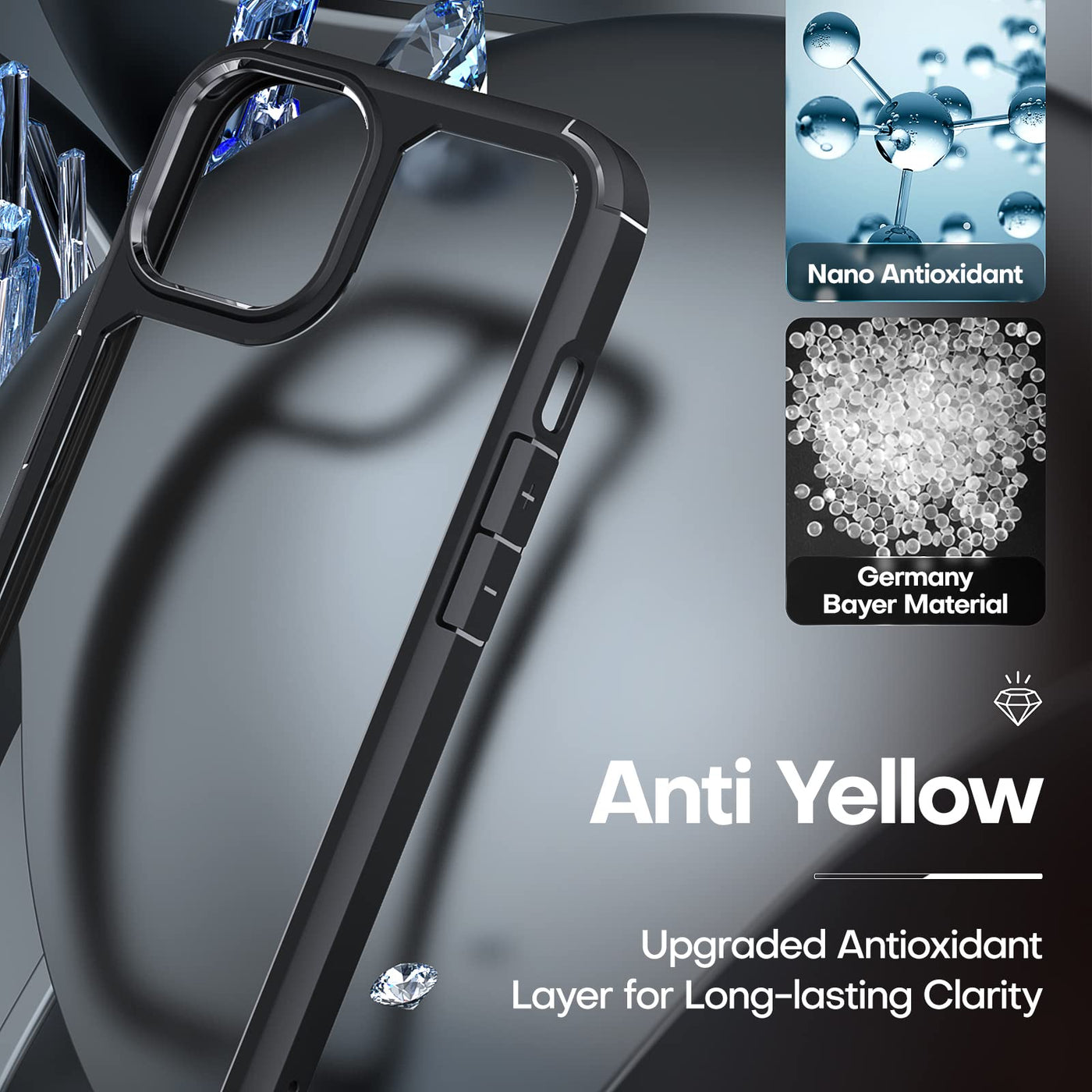 Q: Does the TAURI case prevent yellowing over time?A: Yes, the case is made from high-grade Germany Bayer's ultra-clear TPU material, which includes a nano antioxidant layer that effectively resists stains and sweat, keeping it clear and preventing yellowing over time.