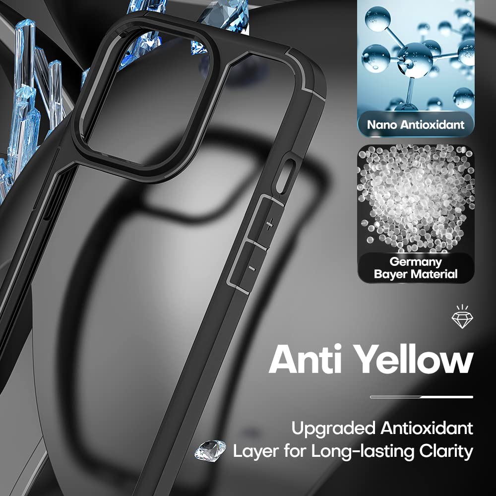 Q: Will the case and screen protector yellow over time?A: No, the TAURI case is designed to be not-yellowing, ensuring that it maintains its sleek black appearance over time, even with regular use.