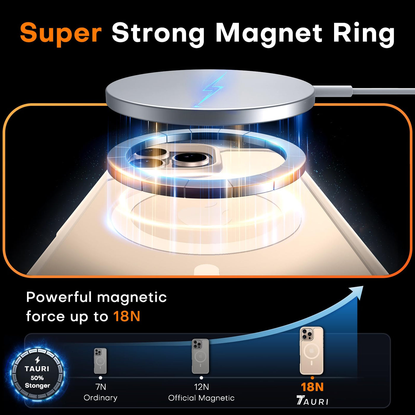 Q: What kind of protection does the TAURI case offer?A: The TAURI case offers military-grade protection, certified in drop tests. It features a combination of a soft frame and a hard PC back cover, along with built-in corner airbags that absorb impact, safeguarding your iPhone 16 Pro from accidental drops, bumps, and scratches.