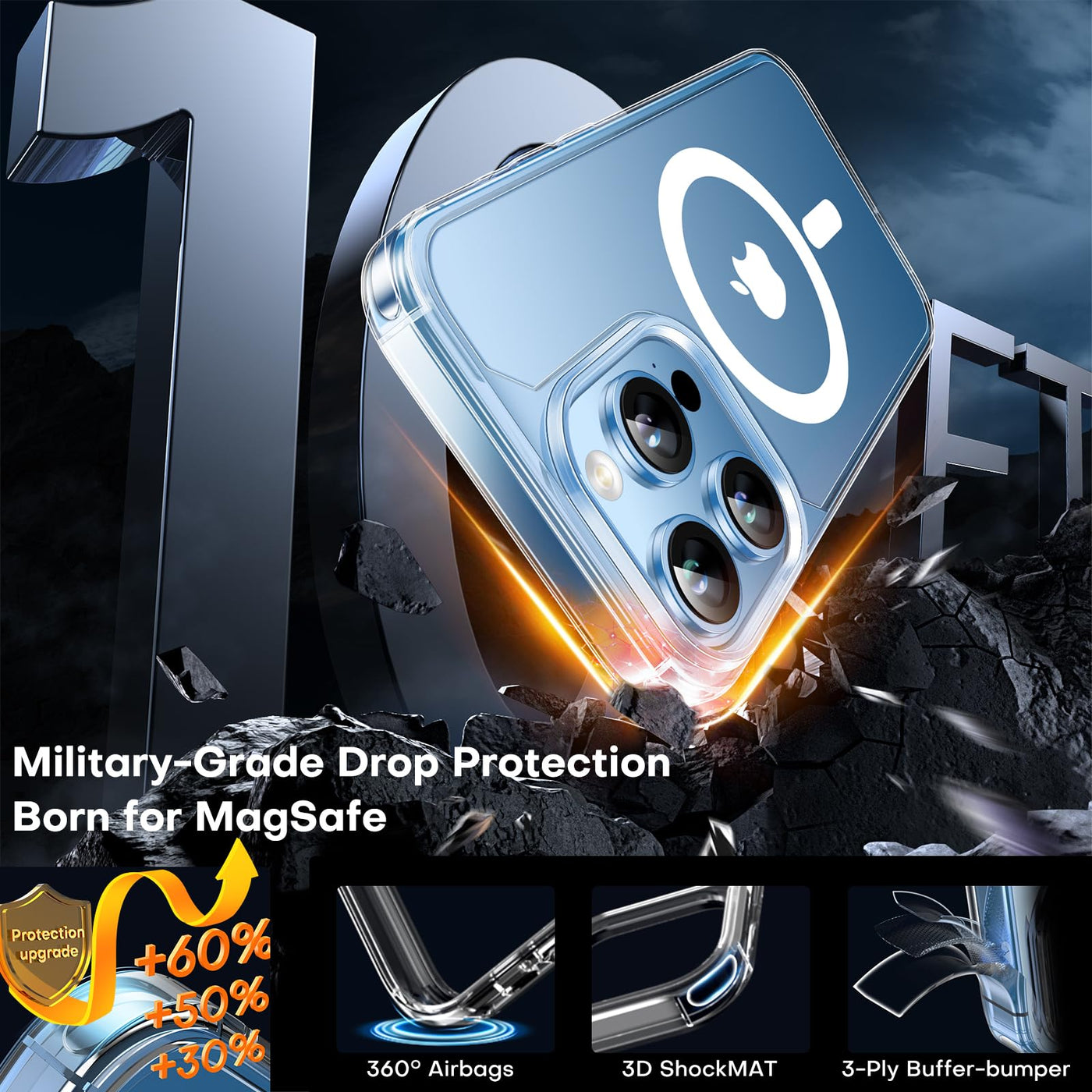 Tauri 3 In 1 Magnetic For Iphone 13 Pro Case Clear, With 2X Hd Screen Protector, 12 Ft Drop Protection, Compatible With Magsafe