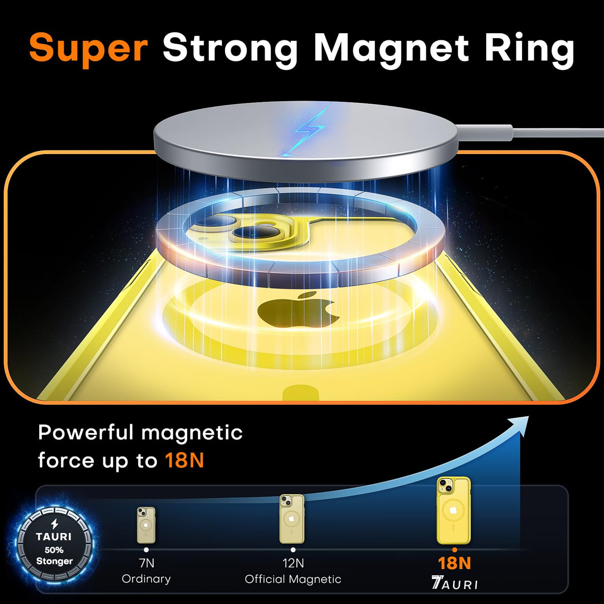 Tauri 3 In 1 Magnetic For Iphone 14 Case Yellow, Compatible With Magsafe [Not-Yellowing] With 2X Screen Protector, Military-Grade Protection, Slim Case For Iphone 14, 6.1''