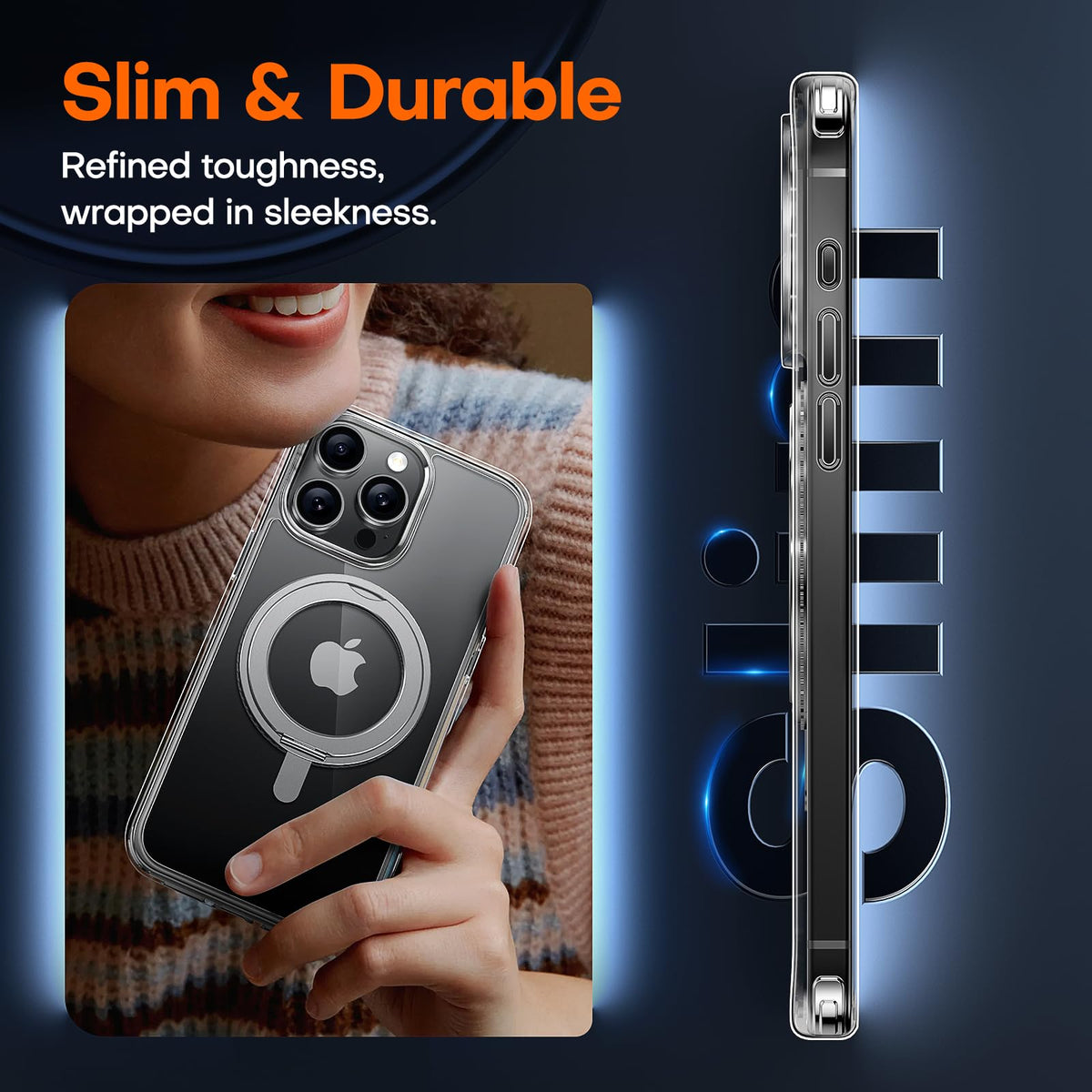 Tauri 360Rotatable Magnetic Ring For Iphone 15 Pro Max Case Clear, [Designed For Magsafe] With Stand & Ring Holder, [Not Yellowi