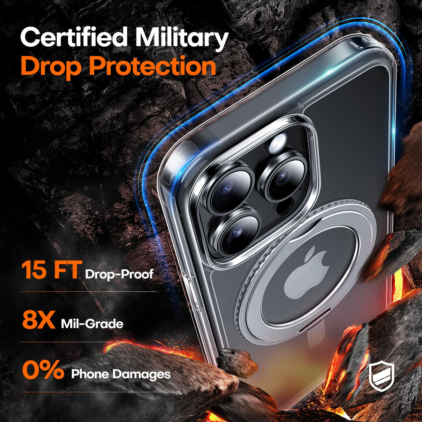 Q: How durable is the TAURI phone case for iPhone 15 Pro Max?A: The TAURI case features a 15-FT military-grade drop certification, having endured over 8000 drop tests from heights of up to 15 feet with zero damage, ensuring robust protection for your device.