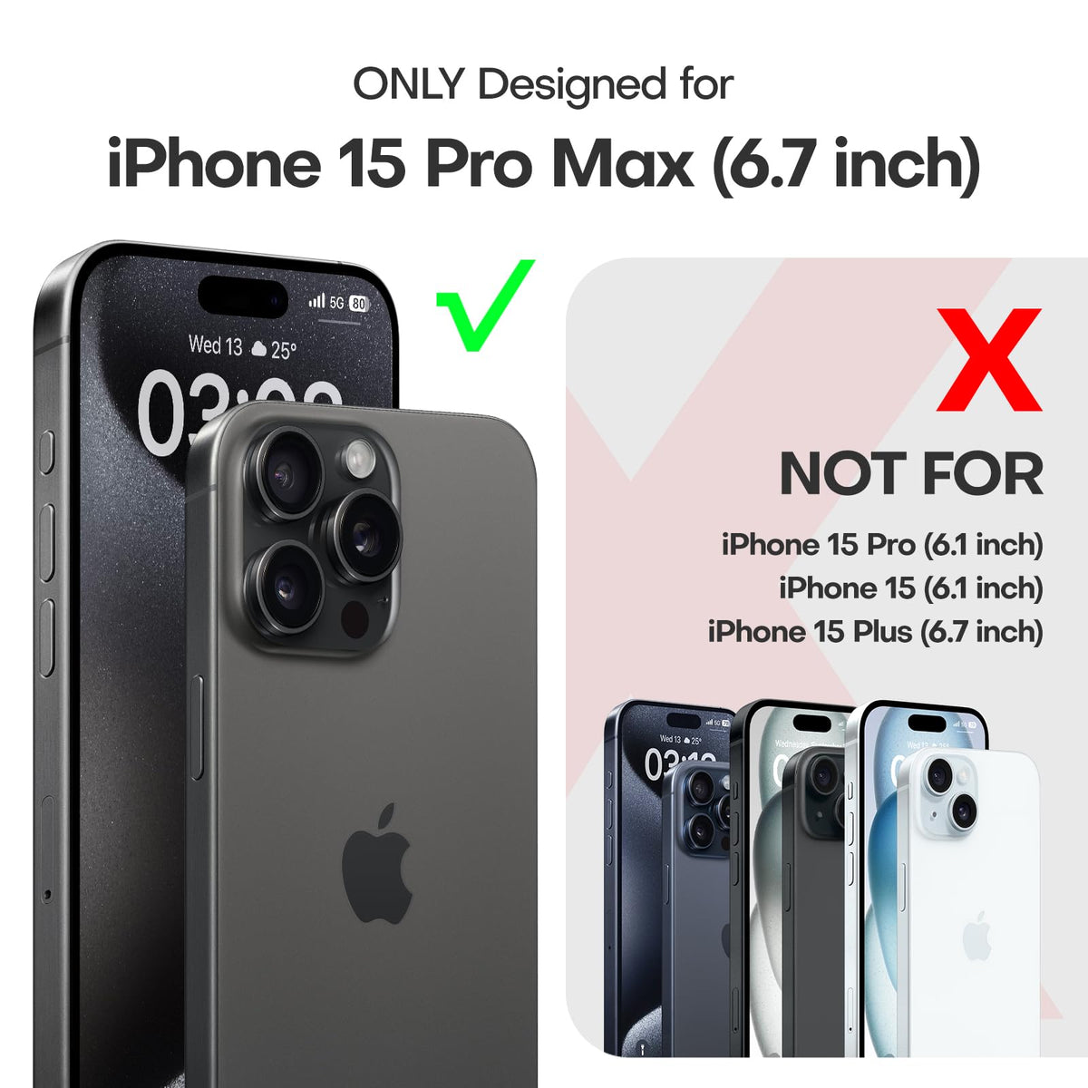 Q: Is the TAURI case compatible with other iPhone models?A: No, the TAURI case is specifically designed for the iPhone 15 Pro Max 6.7 inch and is not compatible with other iPhone models.