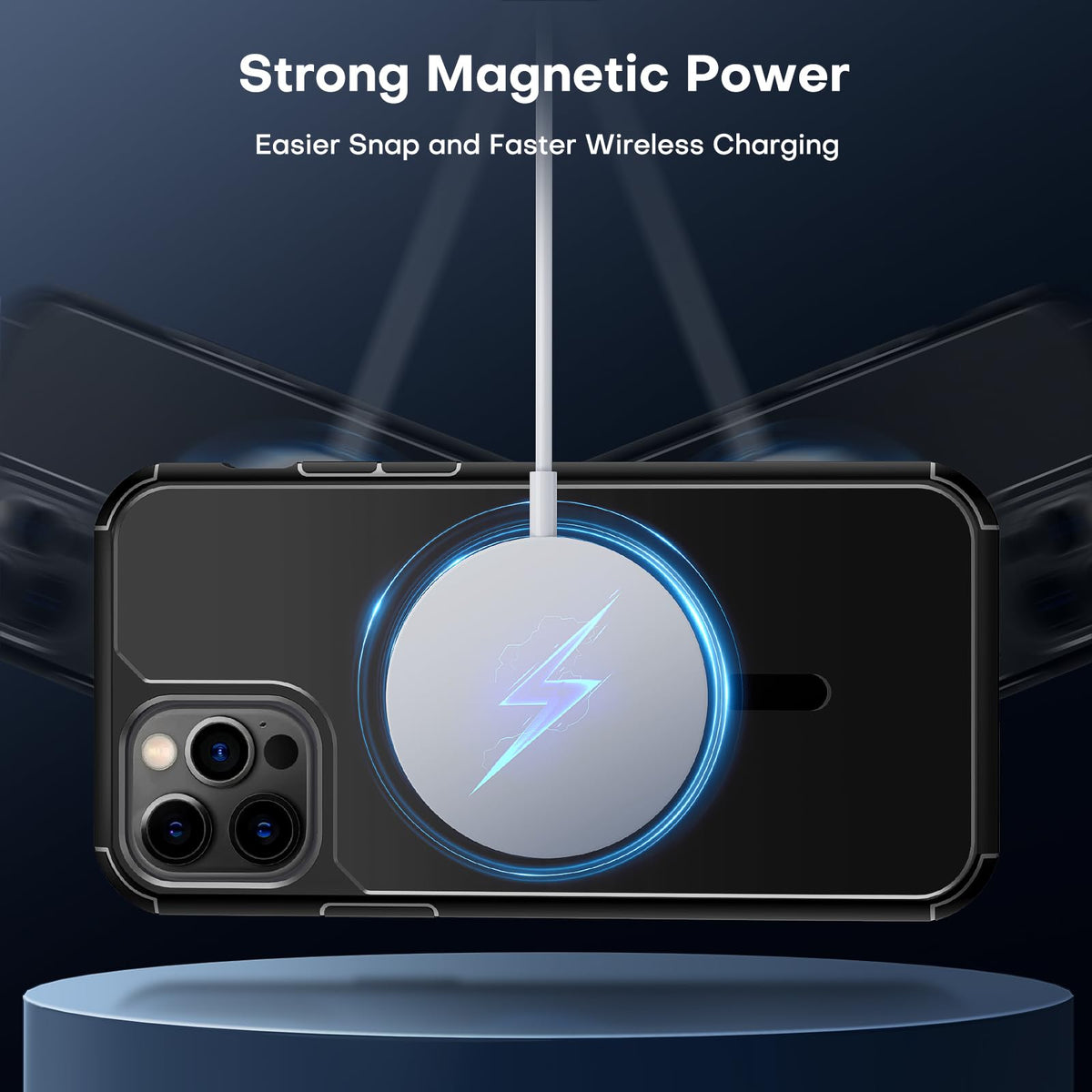 Tauri For Iphone 12 Pro Max Case Black, Compatible With Magsafe [Yellowing Resistant] With 2X Screen Protectors, Military-Grade Protection, Slim Magnetic Phone Case For Iphone 12 Pro Max, 6.7''