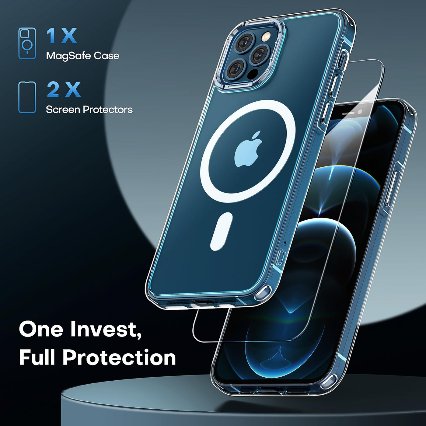 Tauri For Iphone 12 Pro Max Case, Compatible With Magsafe [Yellowing Resistant] With 2X Screen Protectors, Military-Grade Protection, Slim Magnetic Phone Case For Iphone 12 Pro Max, Clear, 6.7''