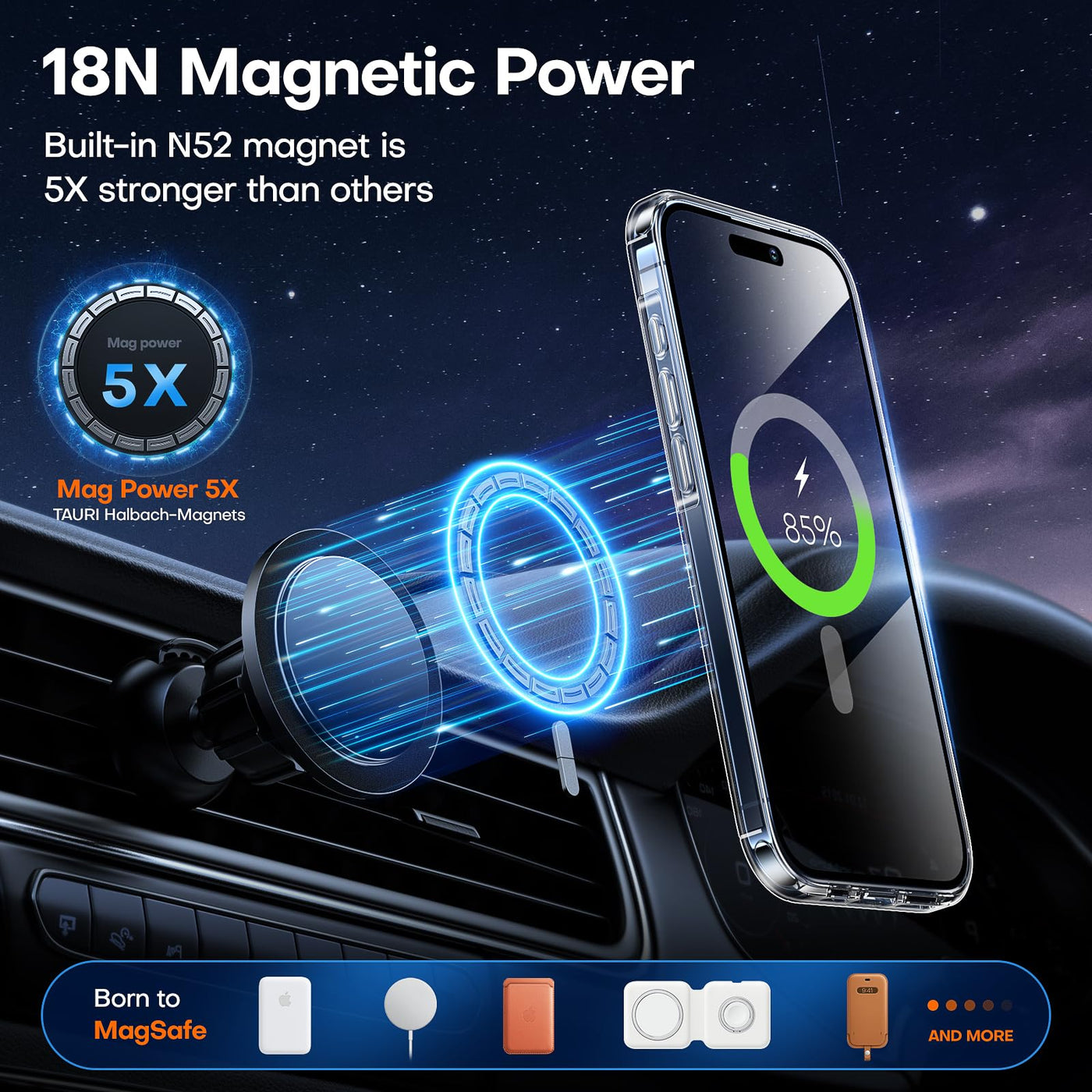 Q: Is the TAURI case compatible with MagSafe accessories?A: Yes, the TAURI for iPhone 15 Pro Max Case is designed with strong built-in super N52 magnets that enhance the magnetic connection, making it fully compatible with all Qi-certified MagSafe chargers, wallets, and car mounts.