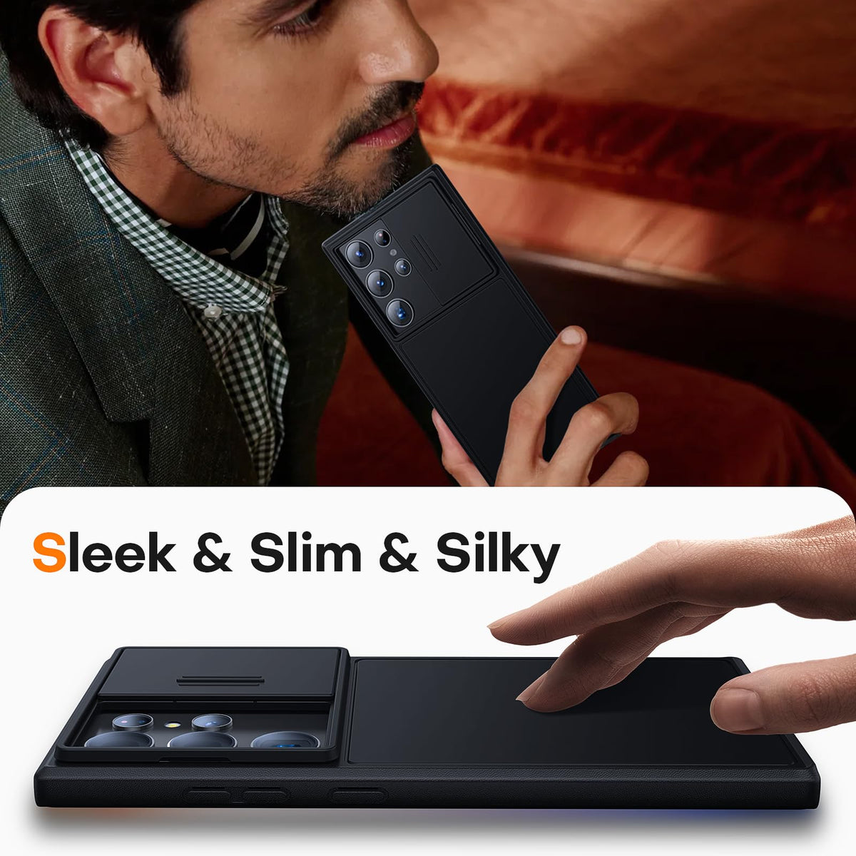 Tauri Kickstand For Samsung Galaxy S24 Ultra Case With Camera Cover, [Rugged Drop Protection] [Slide Camera Cover], Protective Hard Back Soft Edge Phone Case For Galaxy S24 Ultra Case-Titanium Black