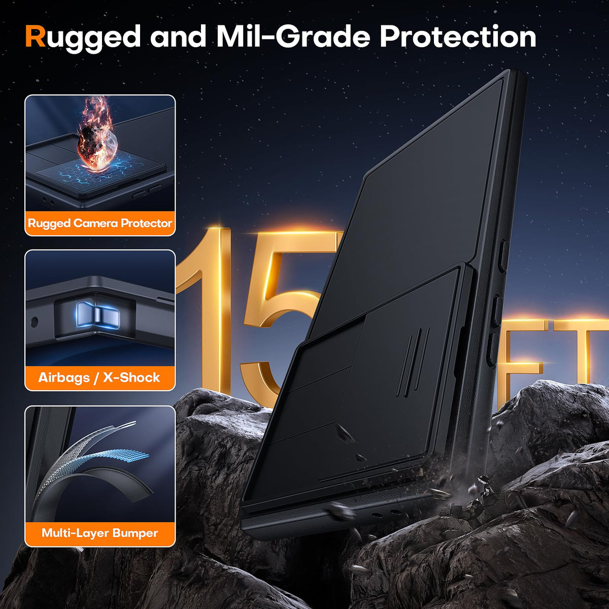 Tauri Kickstand For Samsung Galaxy S24 Ultra Case With Camera Cover, [Rugged Drop Protection] [Slide Camera Cover], Protective H