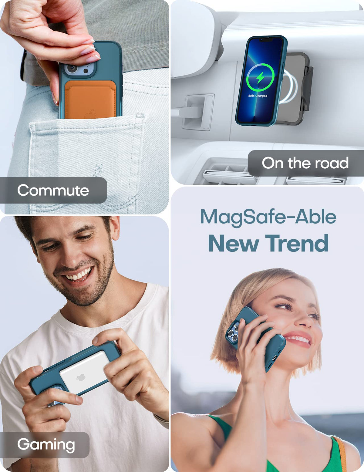 Q: How does the magnetic feature of the case work with MagSafe chargers?A: The TAURI Magnetic case is equipped with built-in super N52 magnets that enhance the magnetic connection, ensuring auto-alignment for faster and safer wireless charging with all Qi-certified MagSafe chargers.